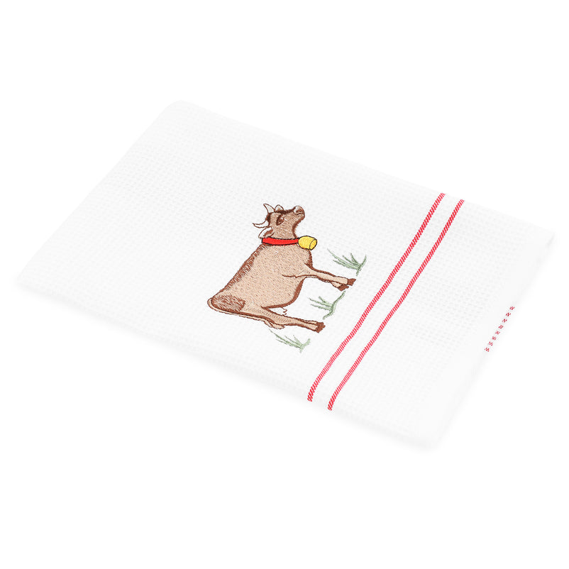 Prosop de bucătărie Vaca. Element util în colecția de piese din bucătărie, prosopul Vaca este realizat integral din bumbac, dovedindu-și funcționalitatea în timpul gătitului. Decorat cu imaginea unei văcuțe, este și un accesoriu de efect pentru spațiul vostru.
