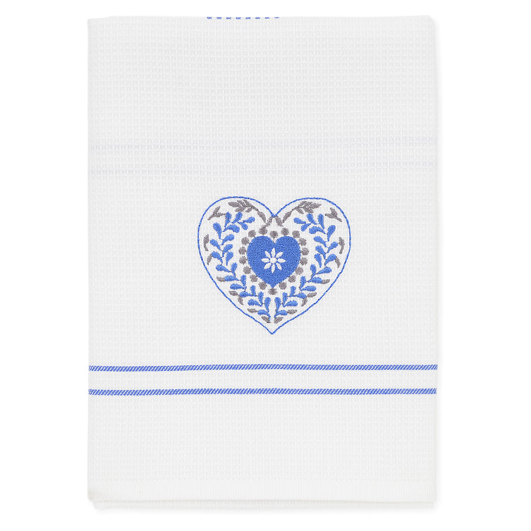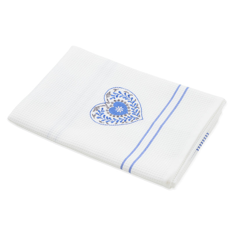 Prosop bucătărie Heart. Prosopul de bucătărie este ajutorul vostru de nădejde în timpul preparării celor mai gustoase mâncăruri. Acesta are un model waffle și este accesorizat cu o broderie elegantă în formă de inimă.