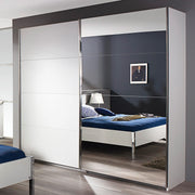 Dulap 2 uși glisante Mercury. Dulapul Mercury are un design perfect pentru dormitoarele amenajate practic, in stil modern. Realizat din PAL, dulapul are o usa cu oglinda, care ii confera amenajarii un plus de funcționalitate. Are usile glisante, astfel ca poate fi deschis cu usurinta chiar și in imediata apropiere a altor piese de mobilier. Dulapul Mercury vă oferă un spatiu generos, perfect pentru depozitarea articolelor vestimentare.