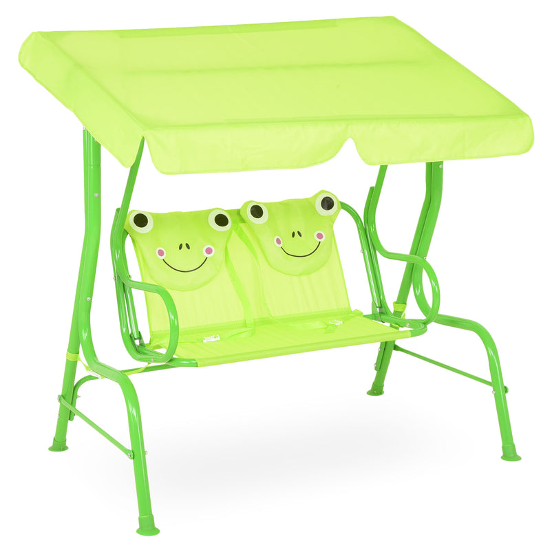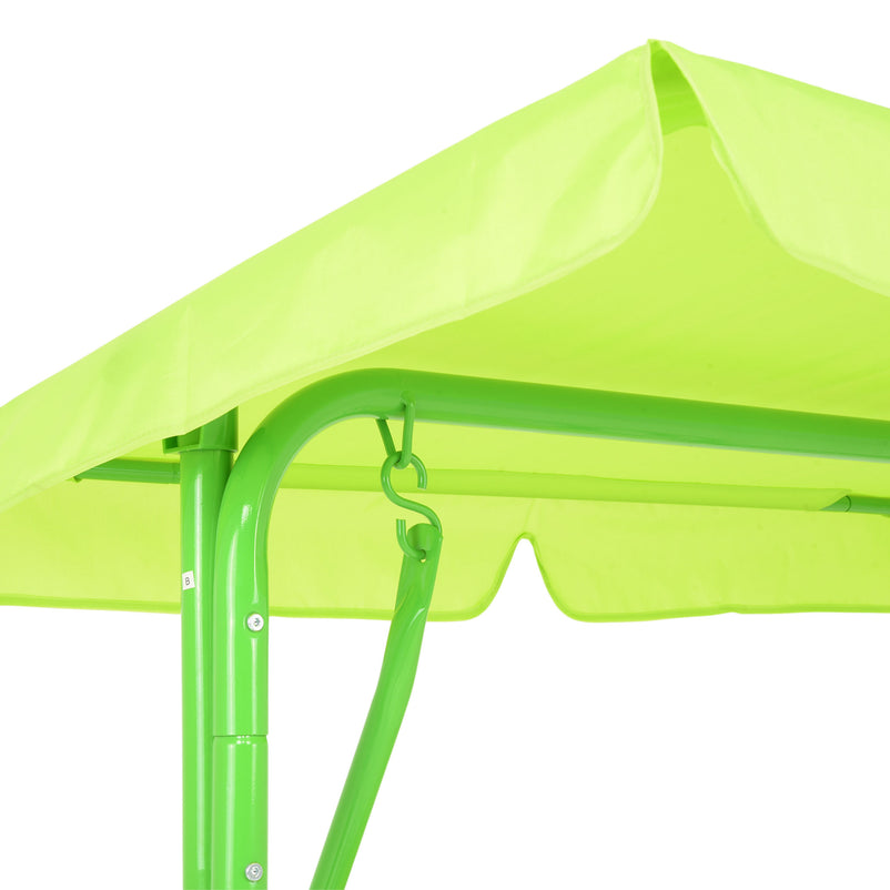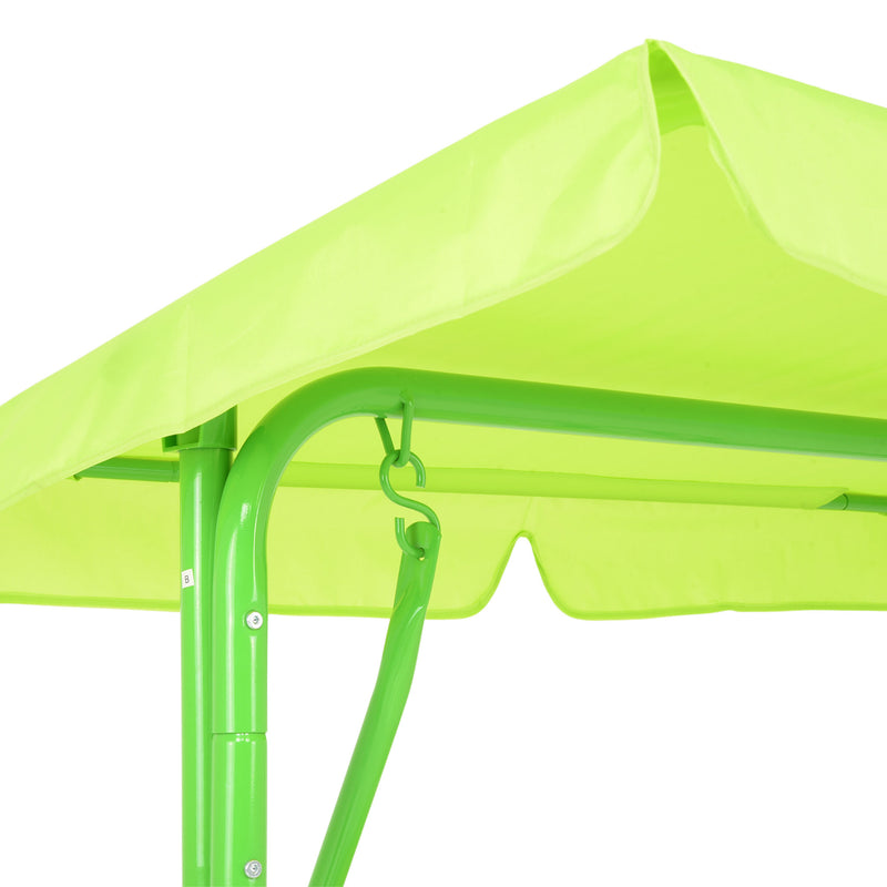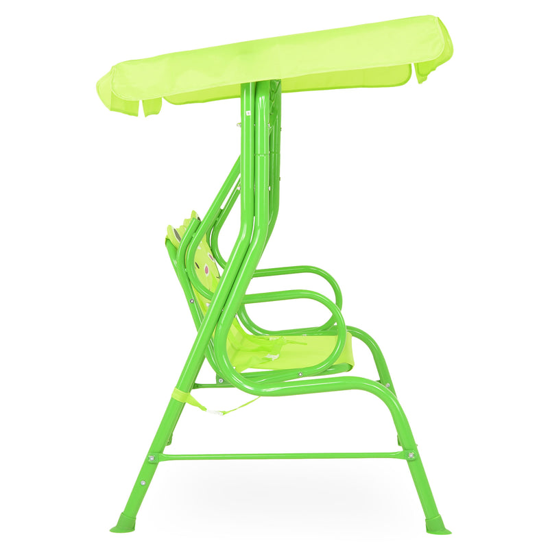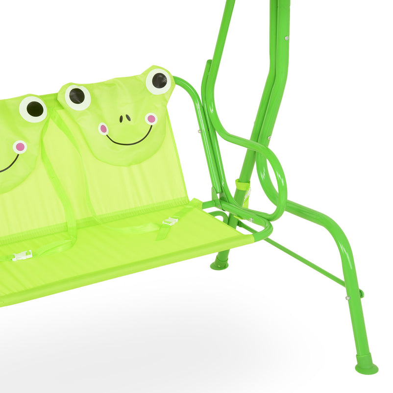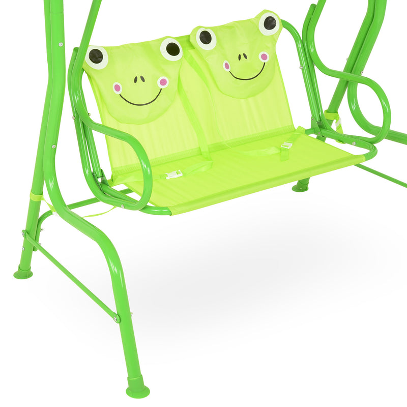 Leagăn pentru copii Frog. Locul de joacă al copiilor voștri poate fi completat cu un leagăn din gama Frog, întregind astfel decorul atât din punct de vedere cromatic, dar și funcțional. Structura leagănului este din oțel vopsită în câmp electrostatic. Șezutul, spătarul și copertina sunt realizate din poliester rezistent la apă și razele UV. Leagănul este dotat cu o copertină care se poate regla cum doriți, aceasta ferindu-vă copiii de soarele puternic sau ploaie. Construiți locul de joacă perfect cu acest leagăn, iar copiii se vor bucura de acesta.
