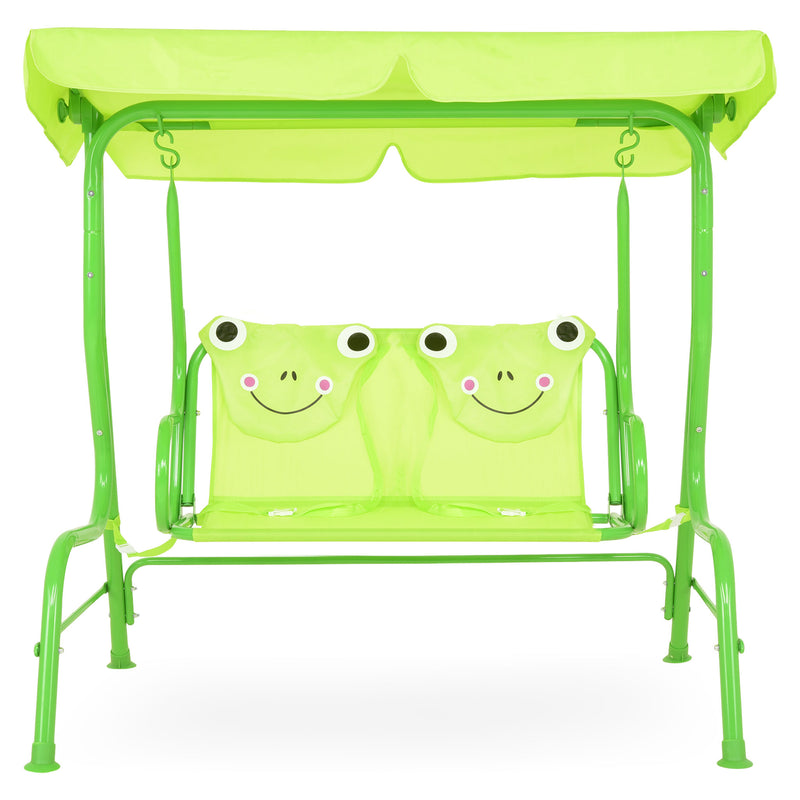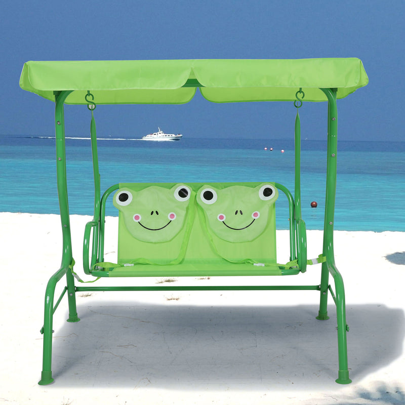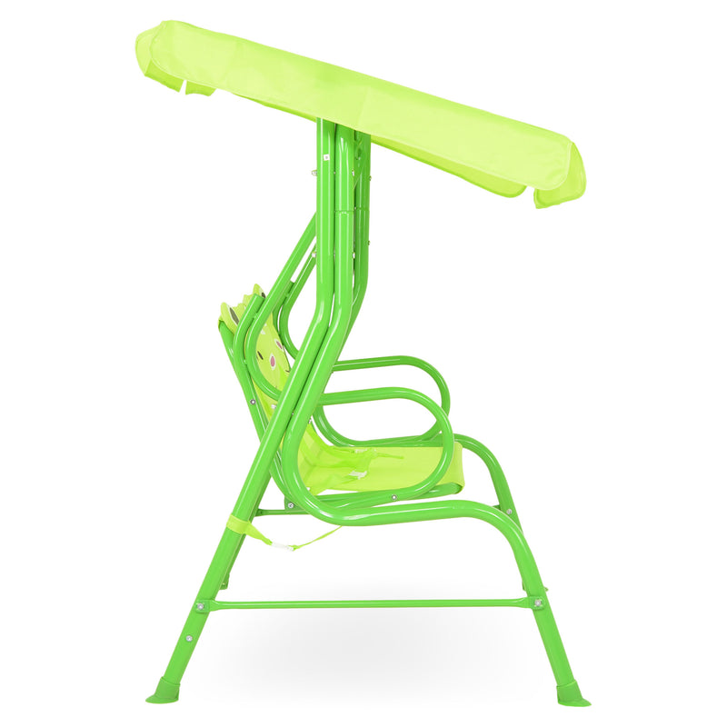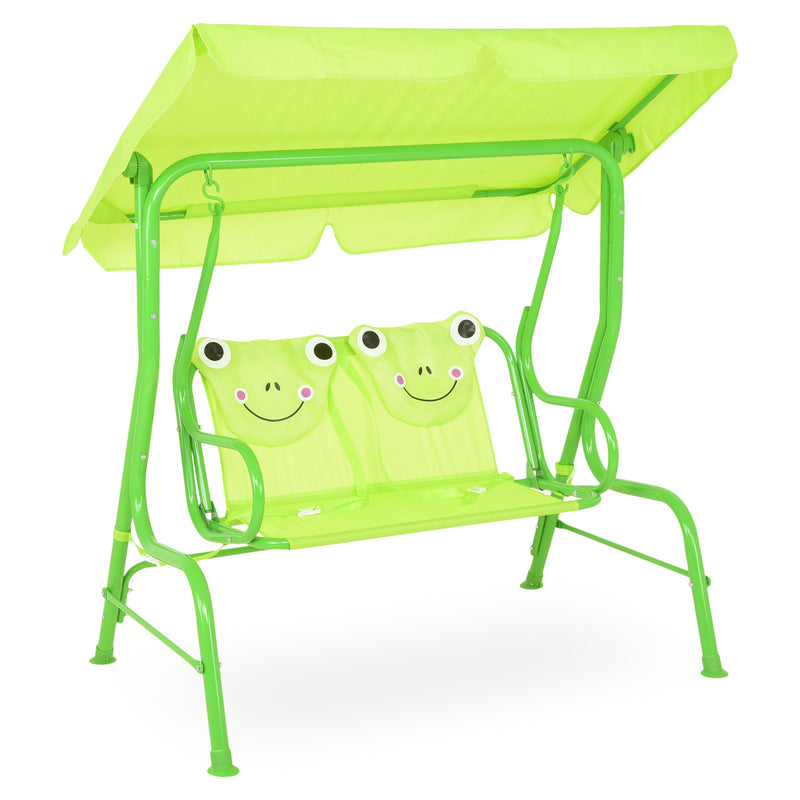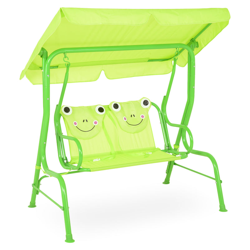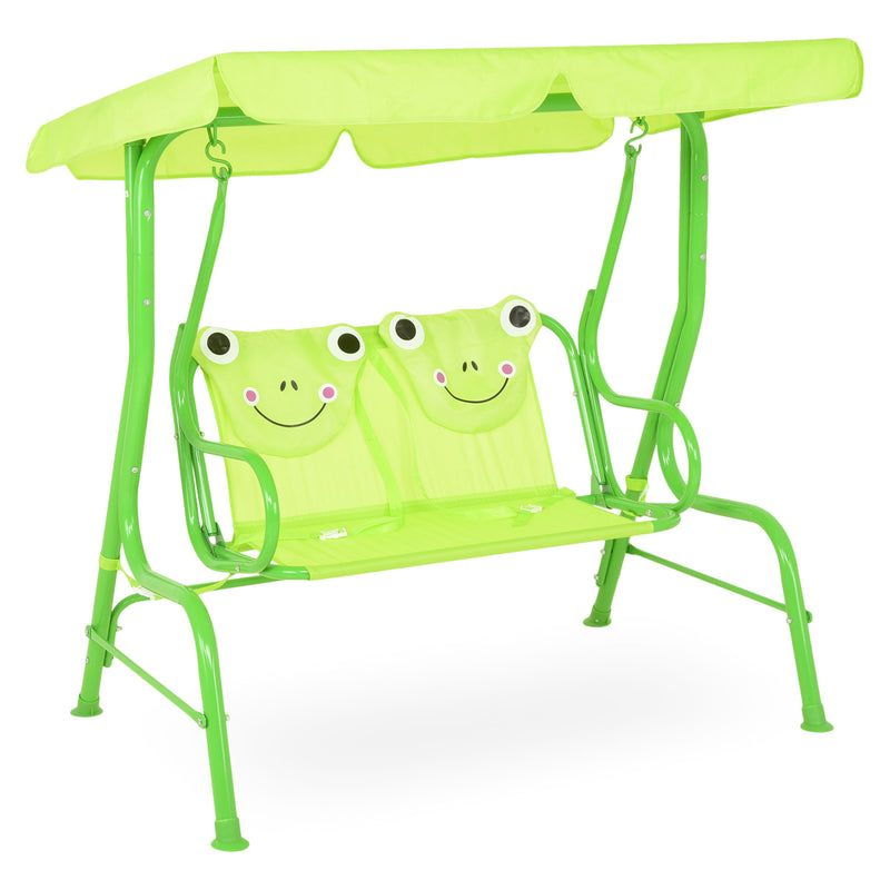 Leagăn pentru copii Frog. Locul de joacă al copiilor voștri poate fi completat cu un leagăn din gama Frog, întregind astfel decorul atât din punct de vedere cromatic, dar și funcțional. Structura leagănului este din oțel vopsită în câmp electrostatic. Șezutul, spătarul și copertina sunt realizate din poliester rezistent la apă și razele UV. Leagănul este dotat cu o copertină care se poate regla cum doriți, aceasta ferindu-vă copiii de soarele puternic sau ploaie. Construiți locul de joacă perfect cu acest leagăn, iar copiii se vor bucura de acesta.
