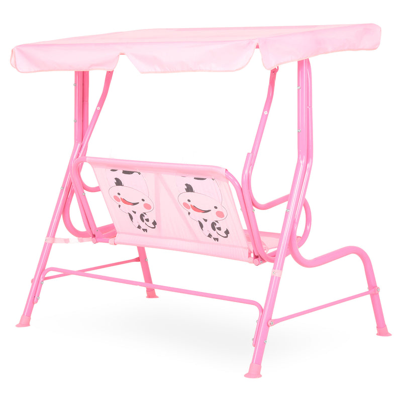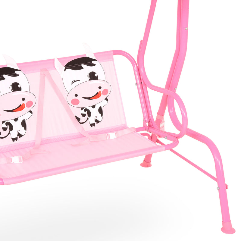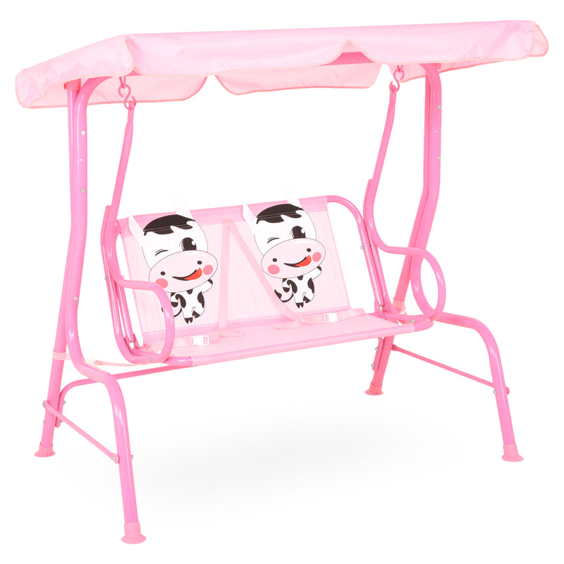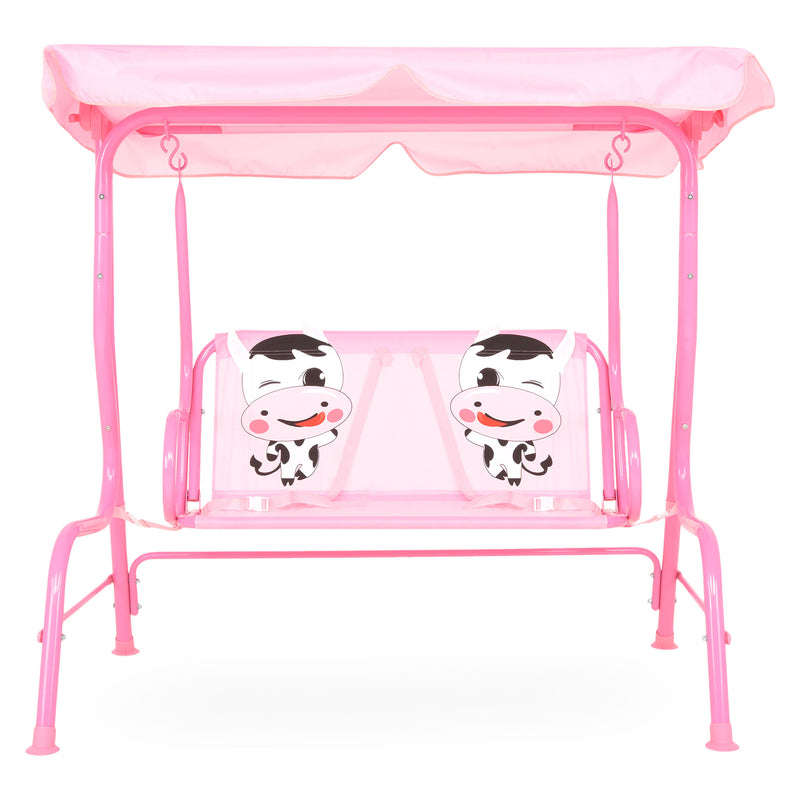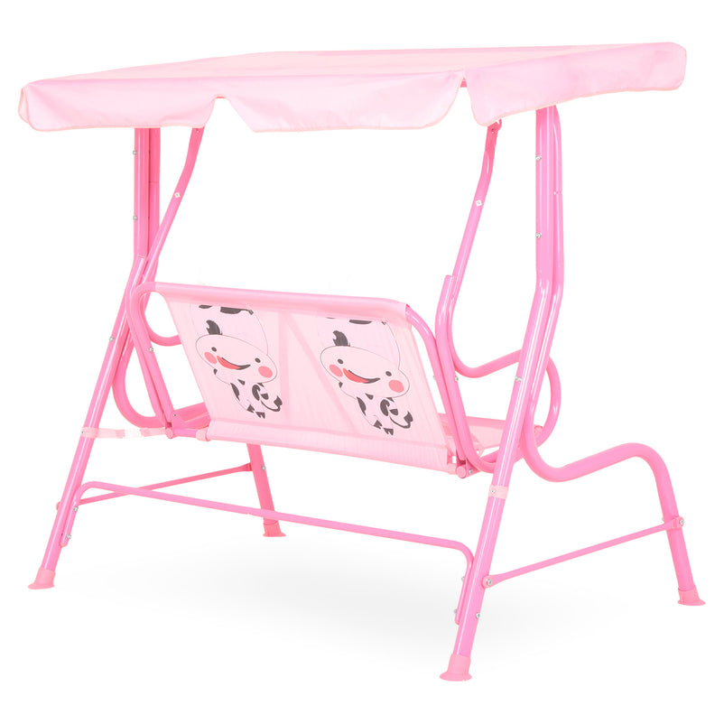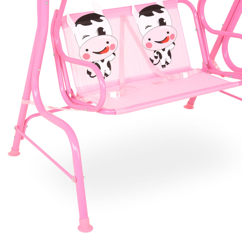 Leagăn pentru Cow. Locul de joacă al copiilor voștri poate fi completat cu un leagăn din gama Cow, întregind astfel decorul din grădină atât din punct de vedere cromatic, dar și funcțional. Structura leagănului este din oțel vopsită în câmp electrostatic. Șezutul, spătarul și copertina sunt realizate din poliester rezistent la apă și razele UV. Leagănul este dotat cu o copertina care se poate regla după cum doriți, aceasta ferindu-vă copiii de soarele puternic sau ploaie. Construiți locul de joacă perfect cu acest leagăn, iar copiii se vor bucura de acesta.