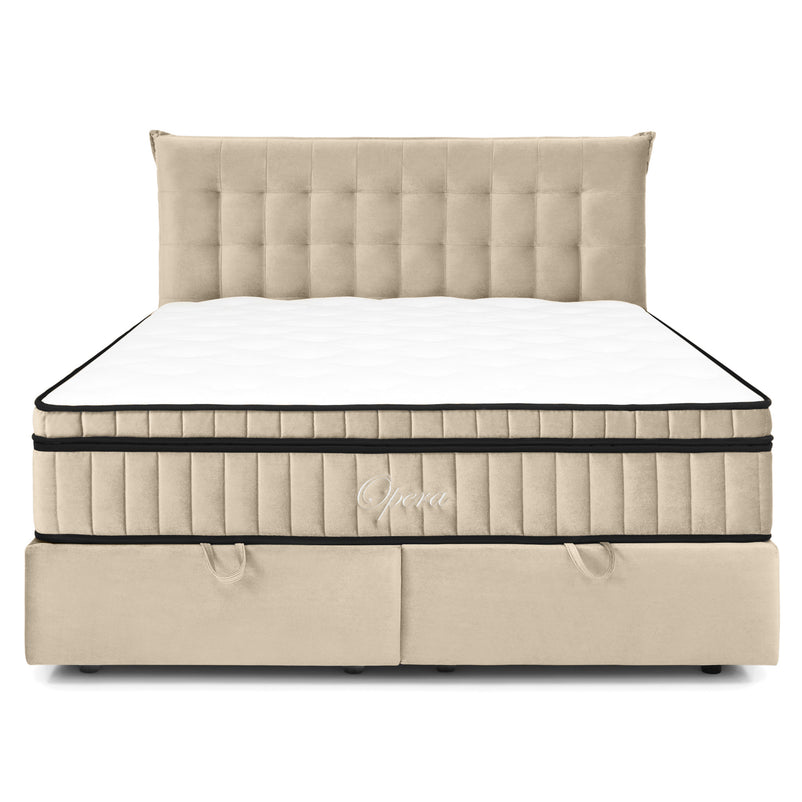 Pat tapițat, somieră rabatabilă, ladă și saltea incluse Opera. Pentru un somn liniștit în cel mai relaxant mod, alegeți patul din gama Opera. Patul are saltea cu arcuri împachetate și 3,3 cm spumă memory, elemente primordiale pentru care somnul să fie unul confortabil și odihnitor. Completați dormitorul vostru cu cele mai elegante și calitative piese de mobilier. Citește mai multe despre întreținere. SPAȚIU PENTRU PICIOARE