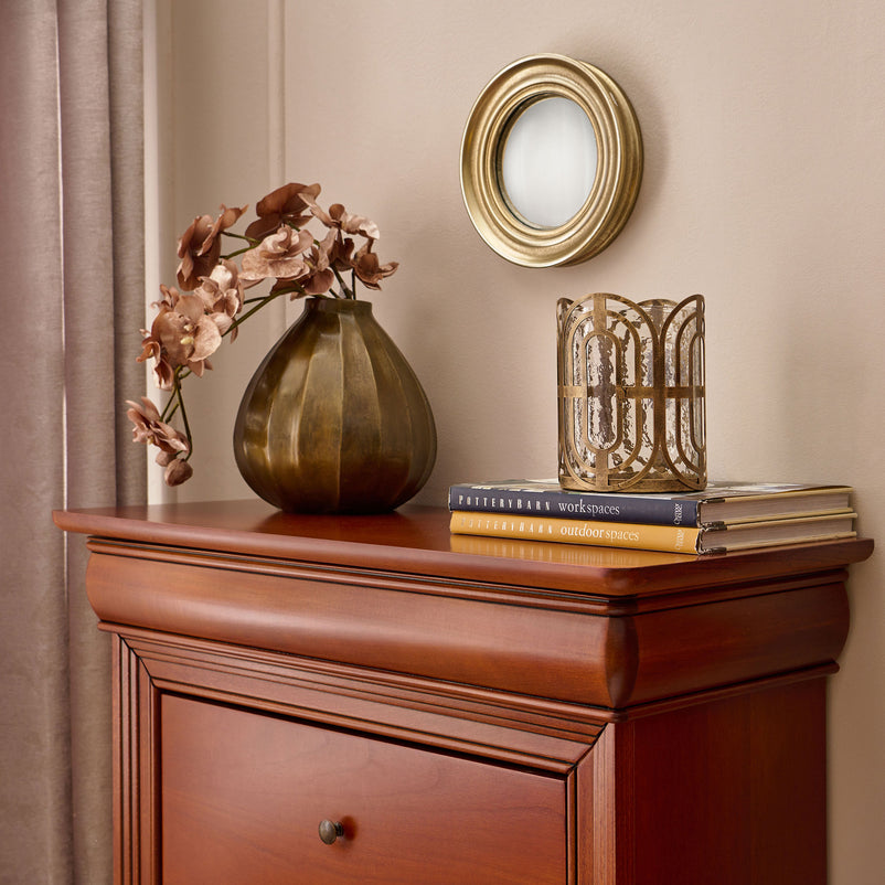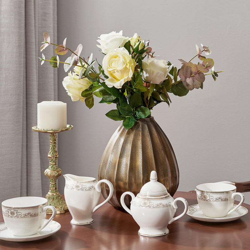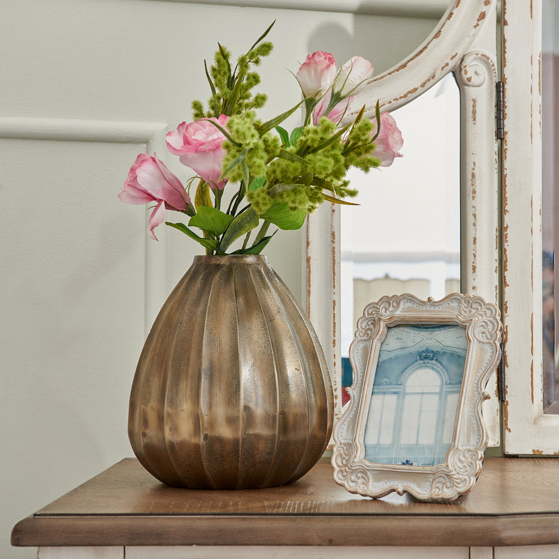 Vază Harper. Vaza Harper se aseamănă unei piese vintage, ea având potențialul de a vă orna cu eleganță camera. Fabricată în totalitate din aluminiu și finisată lucios, aceasta surprinde deosebit prin tonurile antichizate. Creați un mediu frumos acasă prin amplasarea acestei vaze în living sau dormitor.