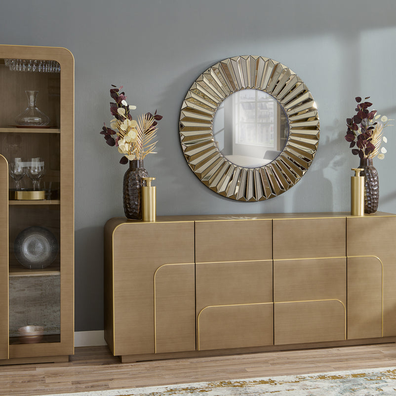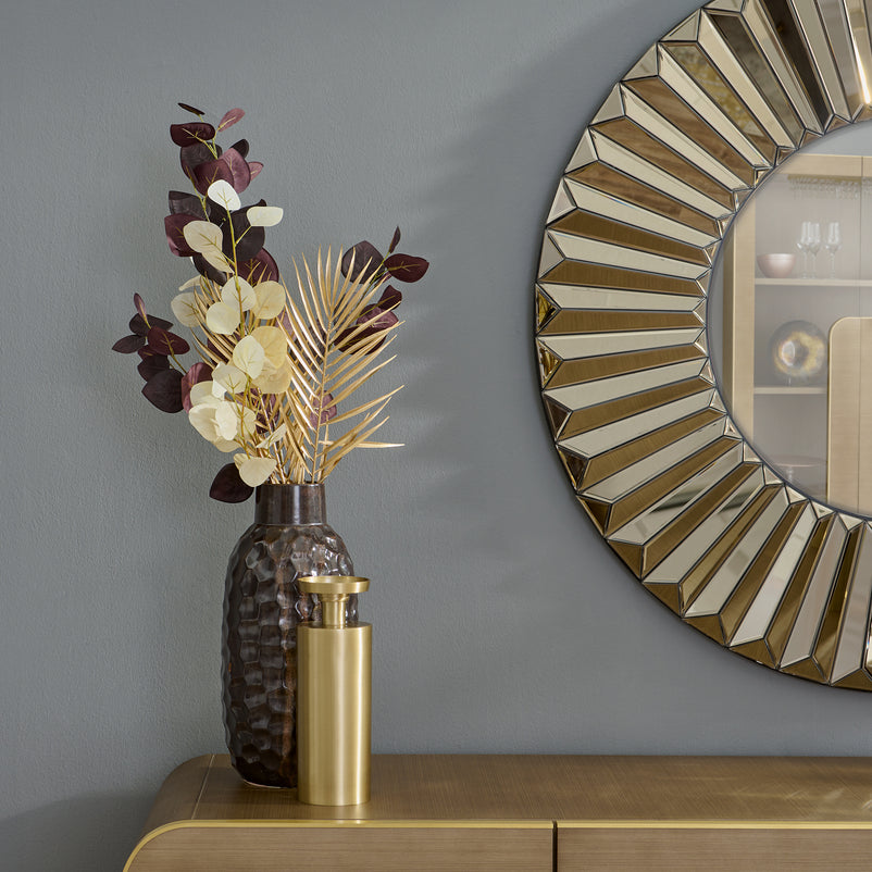 Sfeșnic Leon. Sfeșnicul Leon reprezintă cea mai rapidă și eficientă metodă de a adăuga un plus de stil și luminozitate spațiului interior. Acesta este fabricat din aluminiu, material rezistent și durabil, iar designul luxuriant este asigurat de nuanța aurie și forma contemporană. Bucurați-vă de o atmosferă relaxantă și plăcută în cadrul casei voastre.