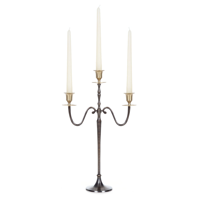 Sfeșnic 3 brațe Luvru. Ca decorațiune pentru living sau accesoriu pentru o masă festivă, sfeșnicul Luvru reprezintă o alegere elegantă și funcțională. Realizat din alamă, contribuie la crearea unui atmosfere calde, speciale și primitoare, acasă.