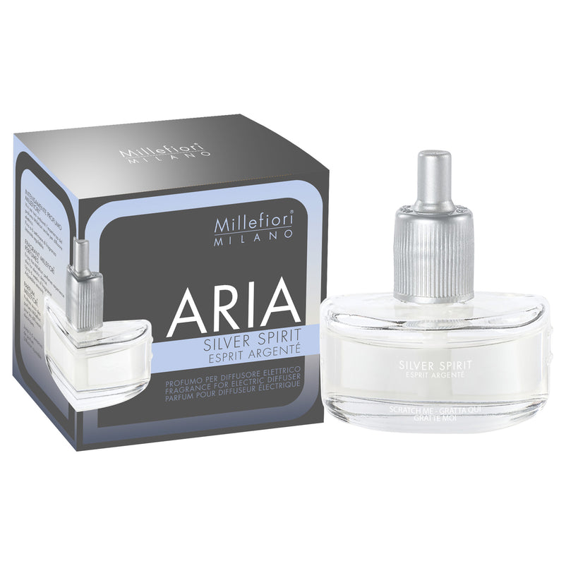 Rezervă difuzor electric Aria. Rezervă de parfum pentru difuzor electric ARIA Durata de utilizare: până la 6-8 săptămâni Gramaj: 20ml Aroma Silver Spirit - pudrată: Un parfum în care notele lemnoase pudrate și de mosc sunt îmbogățite cu vivacitatea citricelor.