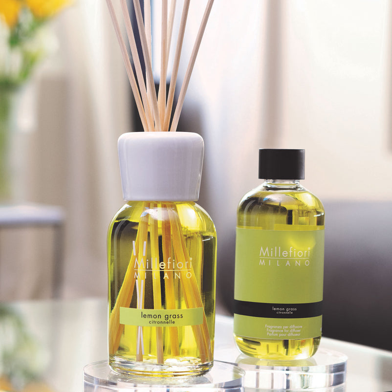 Difuzor parfum cameră Lemon Grass. Un parfum inspirat de zilele calde însorite din Provence, care evocă parfumurile proaspete ale frunzelor de tei, bergamotă și verbena. Împletite cu nuanțe florale și aromate. Aroma LEMON GRASS: Un parfum strălucitor și vibrant care amintește de mirosurile de citrice, la baza acestui parfum sunt notele frunzelor de verbena și notele florale proaspete.