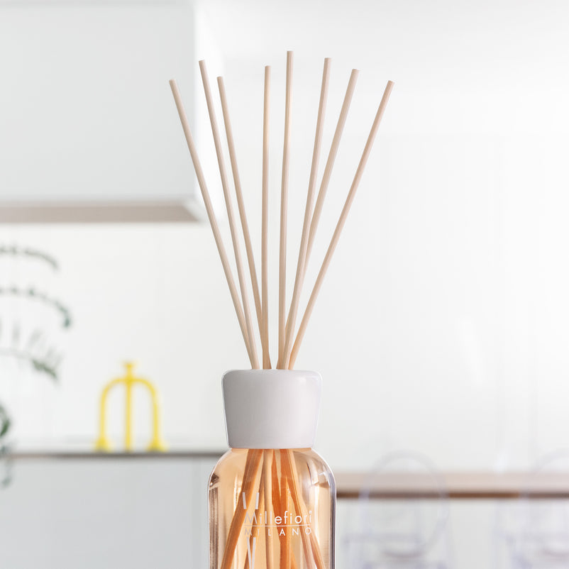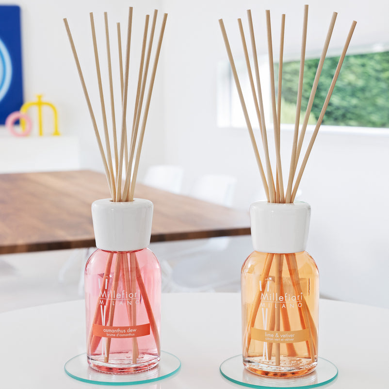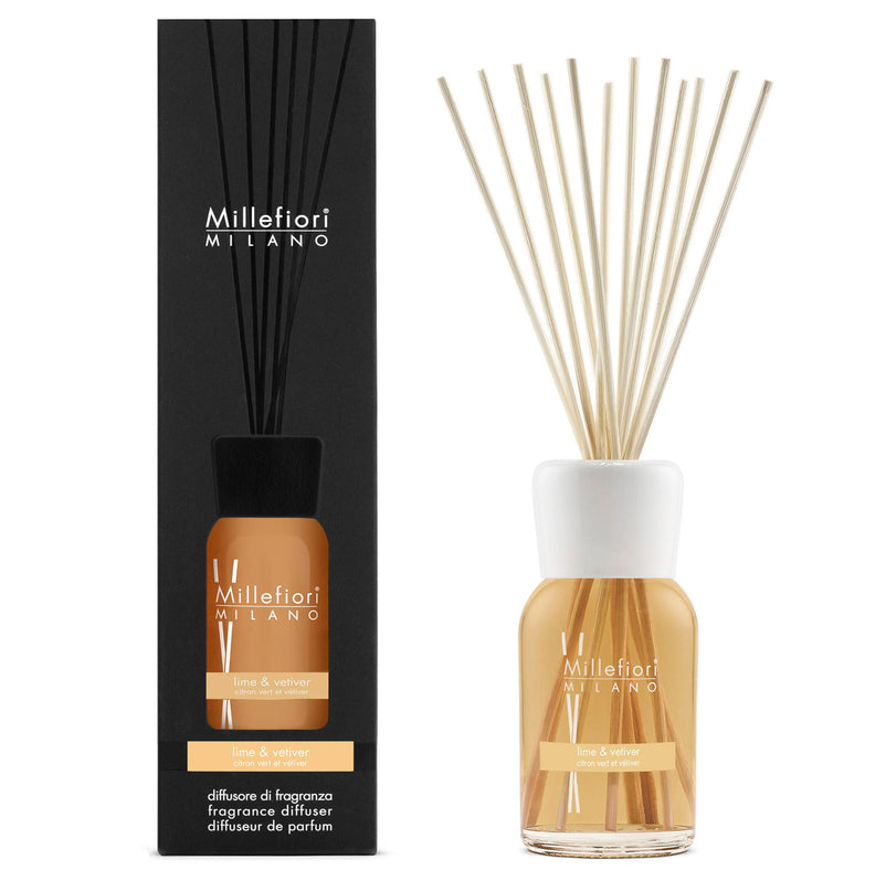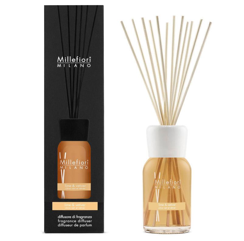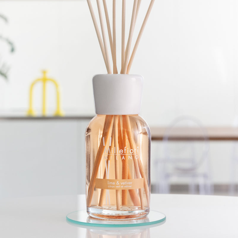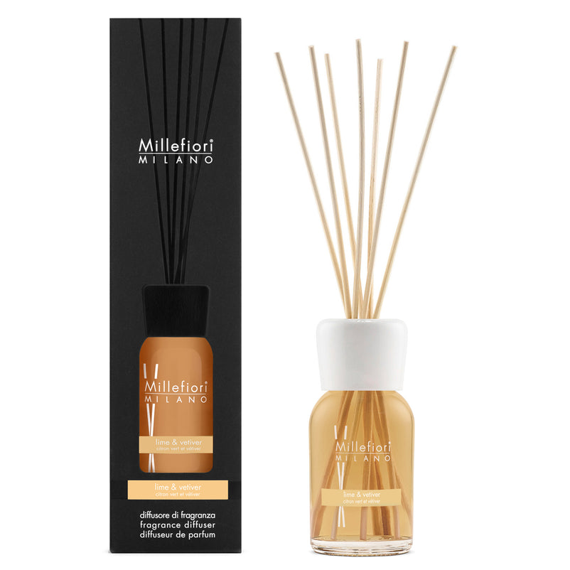 Difuzor parfum cameră Lime&Vetiver. Un parfum inspirat de o plimbare într-un peisaj de coastă, în care o briză de mare aduce în aer note care amintesc de citrice proaspete. Notele parfumate de vârf din aromele de petitgrain și mandarin vor aduce la viață o atmosferă răcoritoare de vară. Aroma LIME & VETIVER: În acest parfum plin de viață, citricele proaspete și acordurile florale din aromele de lime și frezie sunt amestecate cu note de mijloc sclipitoare și picante. Lăsând în urmă note elegante verzi pentru a aduce la viață o atmosferă armonioasă și fascinantă care evocă toată prospețimea citricelor.