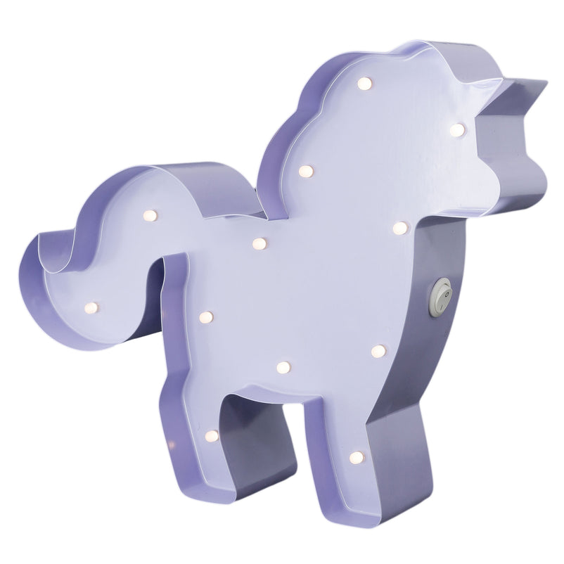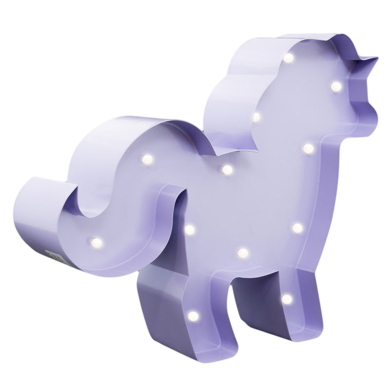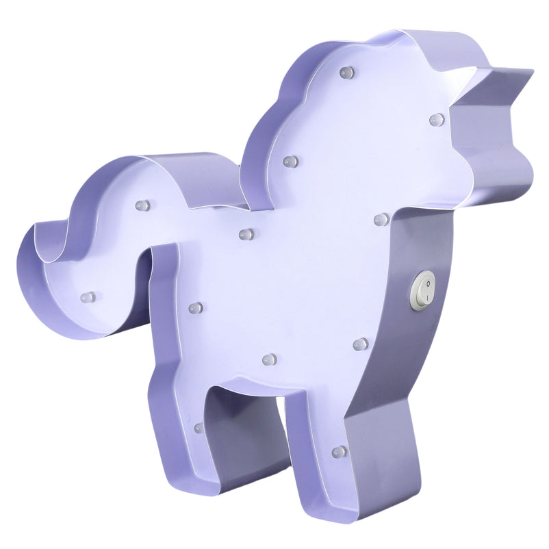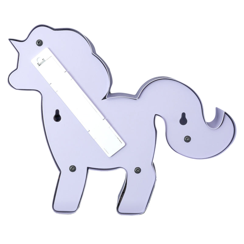 Decor luminos din metal pentru copii Horse. Decorațiunea luminoasă va aduce un plus amenajării din camera copilului vostru. În formă de cal, produsul va ambienta plăcut, oferind o notă veselă, optimistă și jovială. Fiind dotat cu lumini LED, acesta va crea și un efect vizual de impact, care îi va cuceri pe cei mici.
