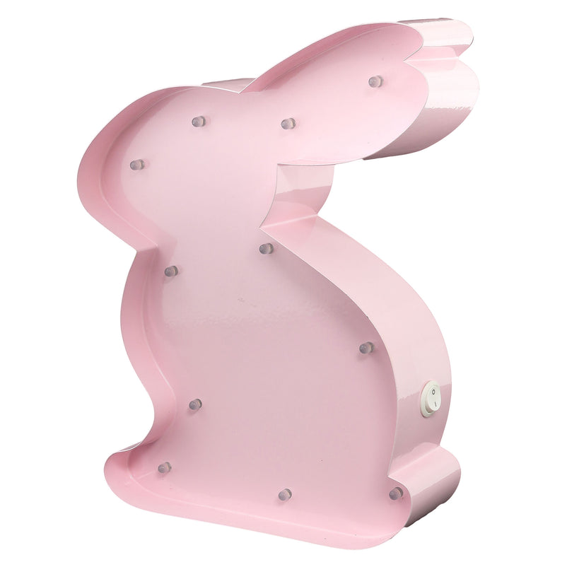 Decor luminos din metal pentru copii Bunny. Decorațiunea luminoasă va aduce un plus amenajării din camera copilului vostru. Produsul va ambienta plăcut, oferind o notă veselă, optimistă și jovială. Fiind dotat cu lumini LED, acesta va crea și un efect vizual de impact, care îi va cuceri pe cei mici.