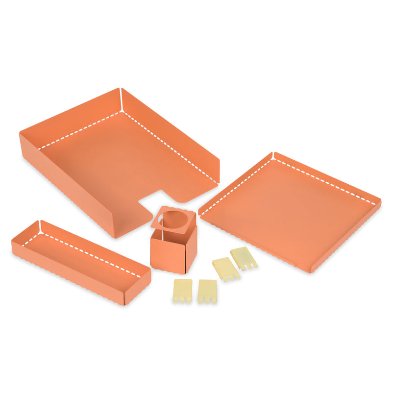 Set accesorii birou Perfo. Menținerea unui birou aranjat cu toate accesoriile care vă sunt utile atunci când lucrați este mai mult decât necesară. Suportul pentru accesorii din gama Perfo se pliază perfect pentru a ține într-un mod organizat creioanele, pixurile, colile de hârtie, dar și alte lucruri diverse pentru birou. Acesta este realizat din metal, finisajul vopsit accentuându-i eleganța necesară. De asemenea, acesta beneficiază de distanțiere, care îmbină piesele din suport cu ușurință.