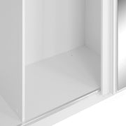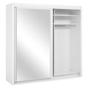 Dulap 2 uși glisante Moon. Dulapul din gama Moon aduce o îmbunătățire în dormitorul vostru atât la nivelul aspectului, cât și al funcționalității. Acesta are două uși glisante, în spatele cărora se ascund polițe și bare destinate depozitării hainelor. Dulapul Moon este realizat din panouri aglomerate din lemn, iar ușile sunt prevăzute cu oglindă.
