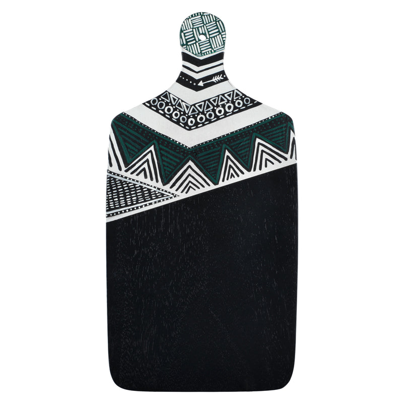 Tocător Masai. Gama de produse Masai este realizată pentru a vă impresiona atât pe voi, cât și pe invitați prin aspectul lor deosebit. Modelele regăsite pe suprafața acestora sunt unice, fiind pictate manual în cele mai mari detalii. Acestea sunt fabricate din lemn de salcâm, material de calitate superioară ce conferă gamei Masai rezistență și durabilitate. Preparați mâncăruri delicioase și eficientizați tocarea legumelor sau fructelor.