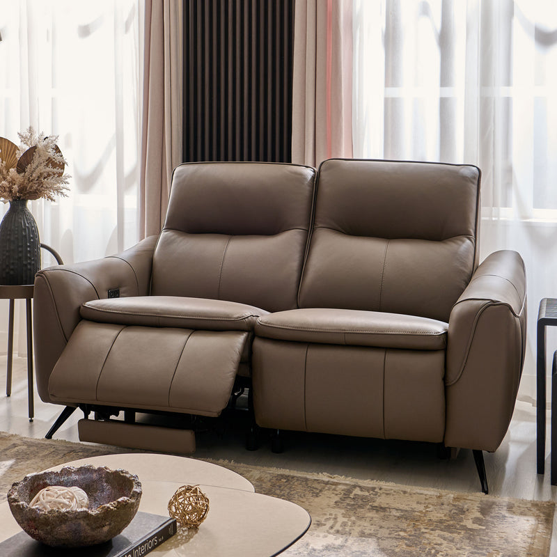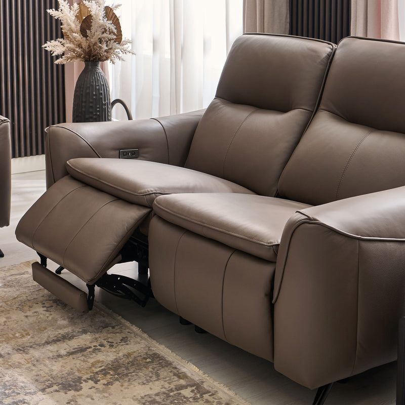 Canapea 2 locuri, 2 reclinere electrice, piele Reynolds.