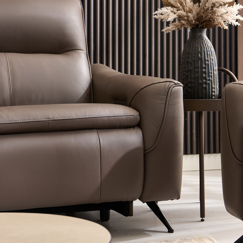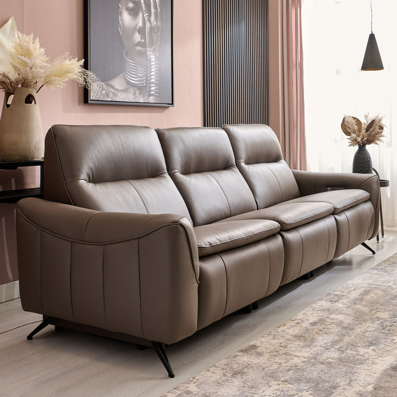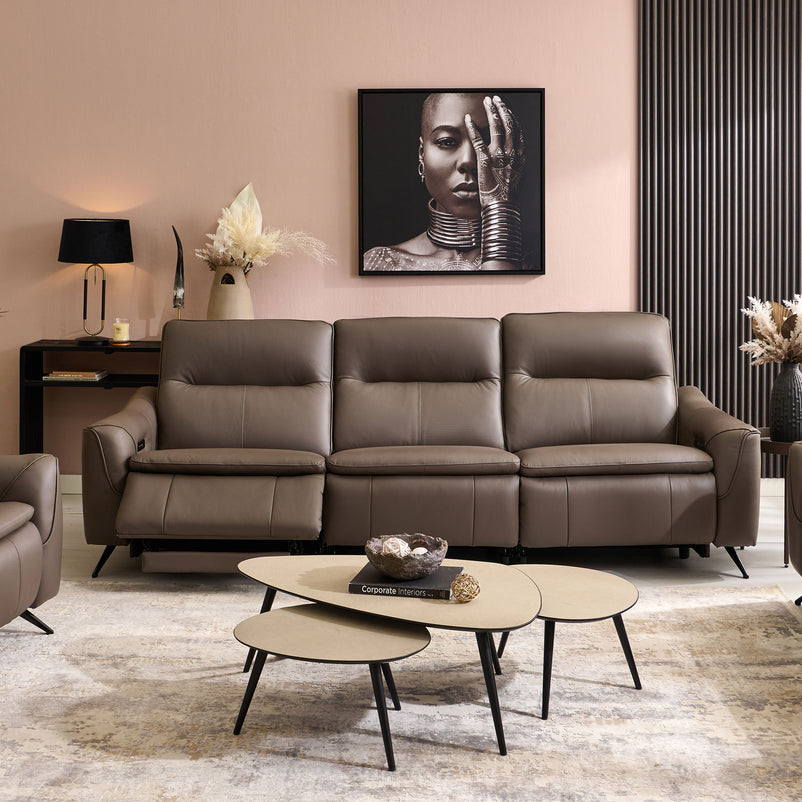Canapea 3 locuri cu 3 reclinere electrice, 2 tetiere electrice, piele Reynolds.