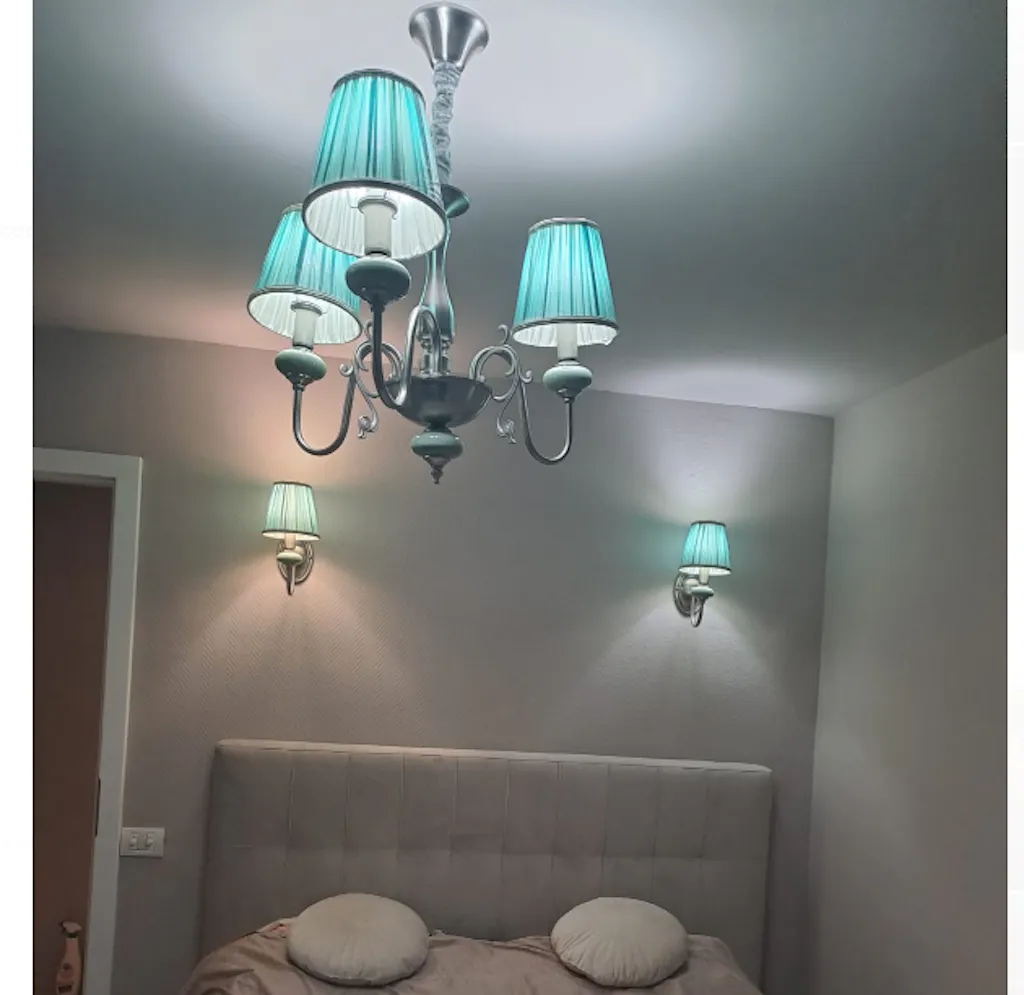 Lustră Caressa. Corpul de iluminat din gama Caressa este ideal pentru a aduce lumină într-un decor în care ați mizat pe un stil retro-romantic, clasic sau elegant. Produsul are un abajur deosebit, confecționat din material textil, cu margini brodate.