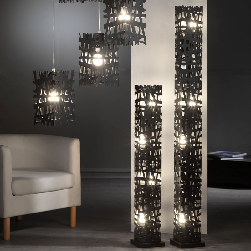 Lampadar Foresta. Contribuiți la spațiul vostru de relaxare și lucru cu un corp de iluminat modern si creativ din gama Foresta, lampadarul luminându-vă încăperea cu stil. Acesta este realizat în integralitate din metal, finisajul în negru oferindu-i un caracter sobru, luxuriant. Puneți umărul la decorarea camerei cu acest corp de iluminat cu un design original din gama Foresta.