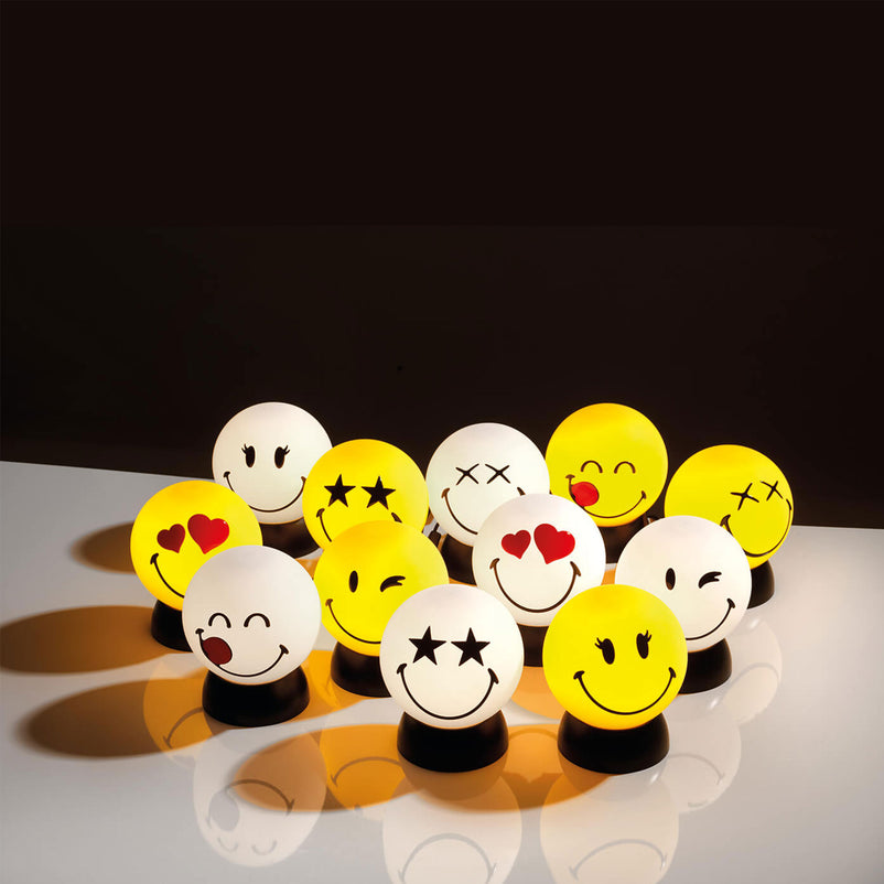 Veioză Smiley. Veioza din gama Smiley este ideală pentru biroul celor mici. Aceasta iluminează spațiul cu succes și creează o atmosferă armonioasă. Veioza ilustrează diferite emoji-uri, care inspiră veselie.