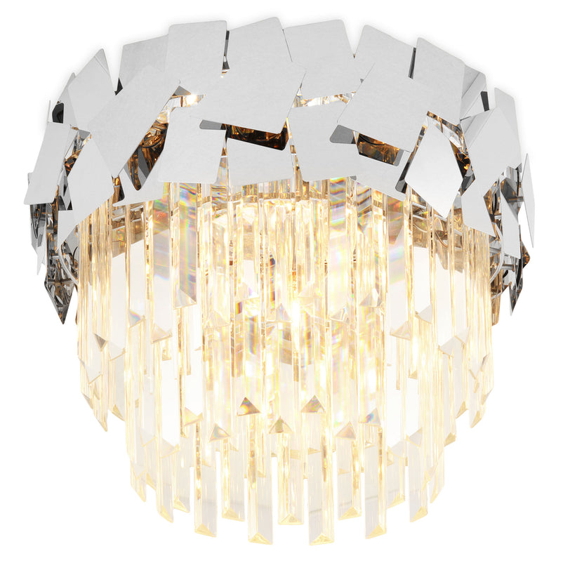 Plafonieră Quasar. Plafoniera din gama Quasar este un corp de iluminat realizat impecabil, acesta decorându-vă și luminându-vă livingul deosebit. Designul acesteia este unul creativ, baza fiind realizată din metal, la fel ca abajurul, plus cristal și sticlă. Adăugați un strop de eleganță camerei voastre și o veți înfrumuseța delicat cu această plafonieră minunată.