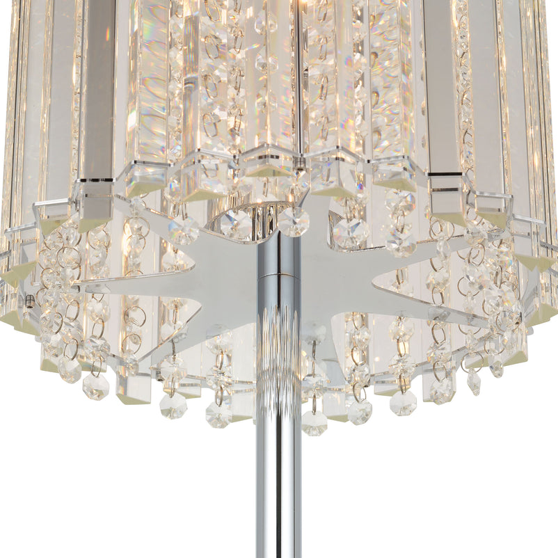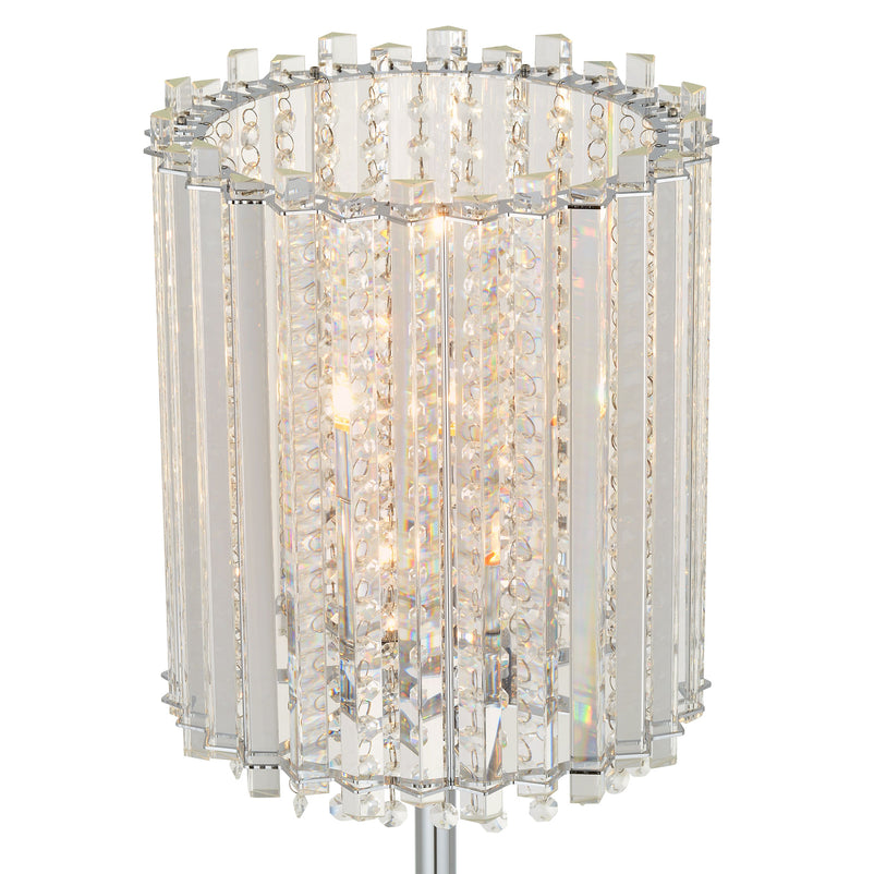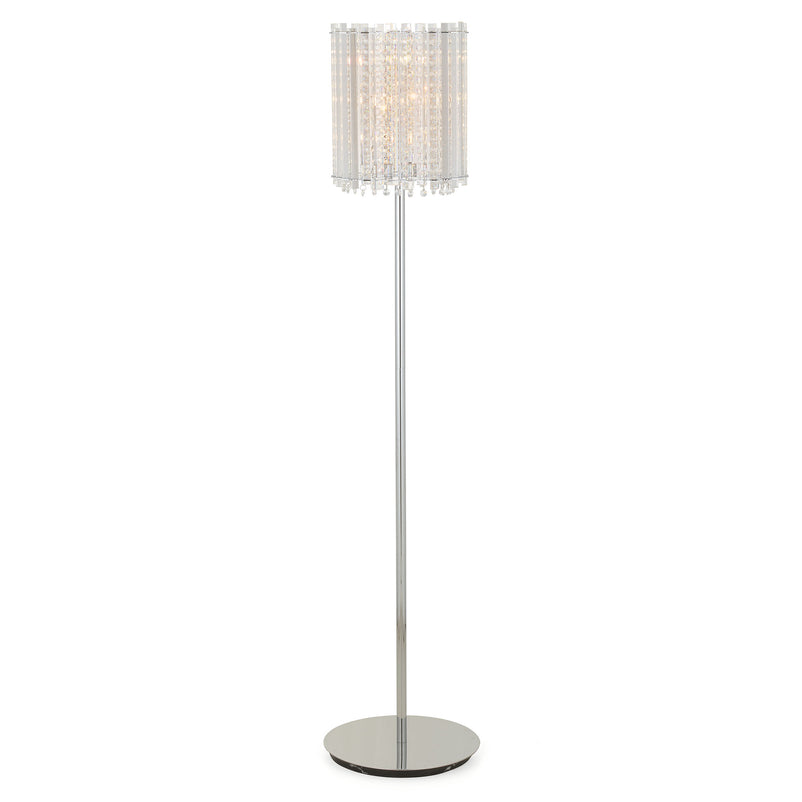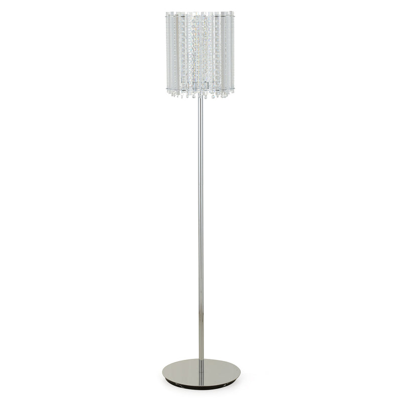 Lampadar Sarabi. Rafinament și lux ridicate la rang de artă cu un corp de iluminat, care va înnobila casa voastră. Produsul este special prin designul care surprinde prin șirurile de cristale, care reflectă lumina într-o ploaie de sclipire. Produsul îndeplinește latura funcțională, iluminând camera și va aduce un plus de stil, latura estetică devansând latura practică.