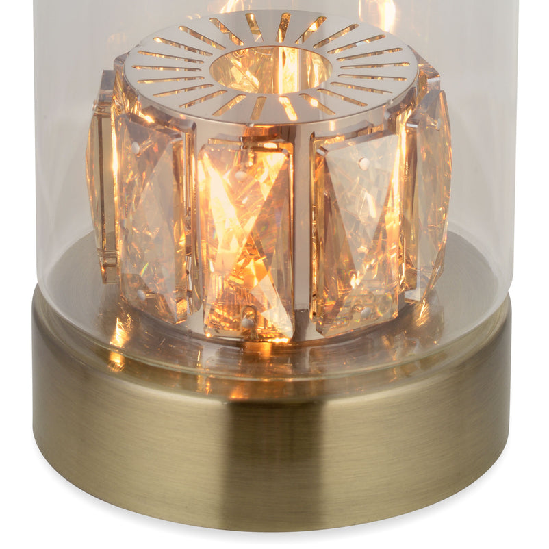Veioză Riya. Corpul de iluminat din gama Riya aduce o notă modernă și elegantă în orice interior. Produsul este spectaculos prin design, având un abajur din sticlă, cu o brățară din metal și cristale care înconjoară becul, pentru un efect estetic special. Corpul de iluminat împletește latura funcțională și cea practică, astfel încât să vă bucurați de o ambianță încântătoare chiar la voi acasă.