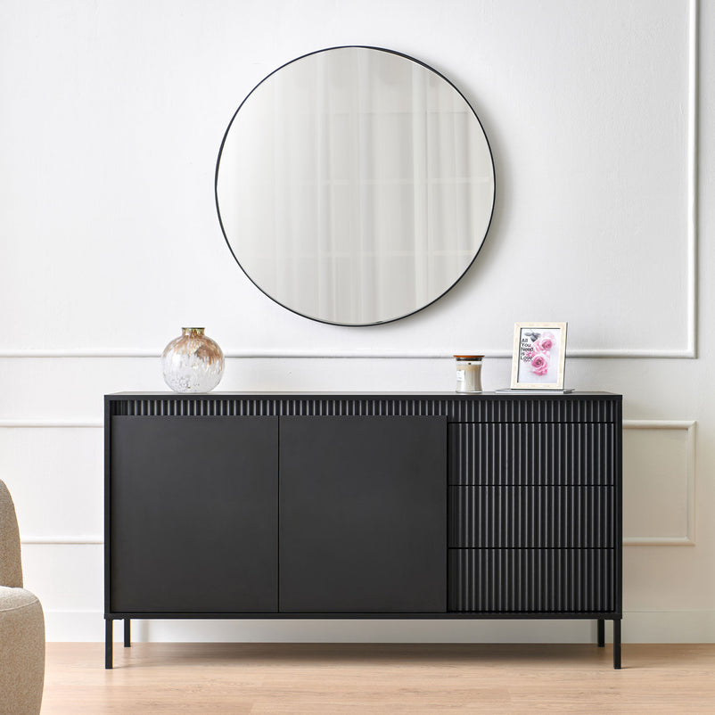 Oglindă Metropolis. Ultimele retușuri ale garderobei sau toaletei voastre sunt importante pentru a avea prezența dorită atunci când participați la un eveniment important. Bucurați-vă de o experiență elegantă a alegerii ținutei, mulțumită oglinzii din gama Metropolis, cu design circular și ramă cu finisaj negru, care depășește contrastant oglinda în relief, oferindu-i un atribut de unicitate caracterizat de simplitate și stil.