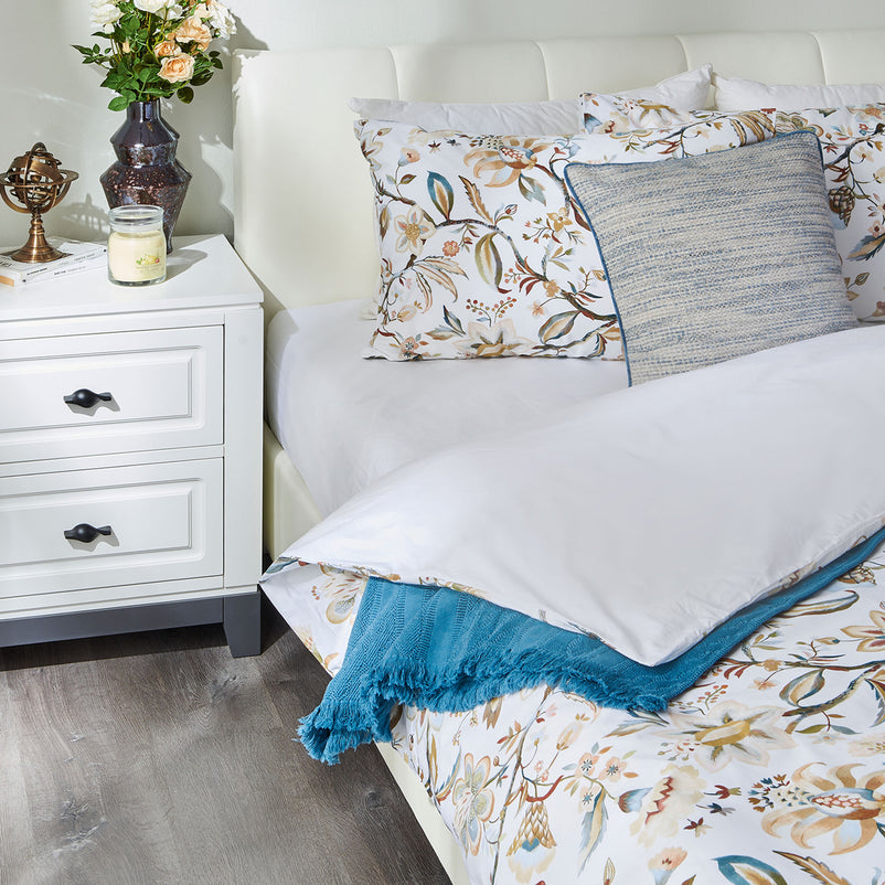Set așternut 4 piese Napoliver. Împrospătează-ți dormitorul cu setul de așternut Napoliver, confecționat din 100% bumbac, 200TC. Țesătura de percal este fină și durabilă, asigurându-ți un somn odihnitor și plăcut pe tot parcursul nopții. Modelul imprimat digital în culori vibrante pe un fundal alb adaugă un strop de veselie și prospețime oricărui decor, transformând dormitorul într-un spațiu modern și primitor. Ușor de întreținut și rezistent în timp, setul de așternut Napoliver combină estetica atrăgătoare cu confortul superior, fiind alegerea ideală pentru un dormitor elegant și confortabil.