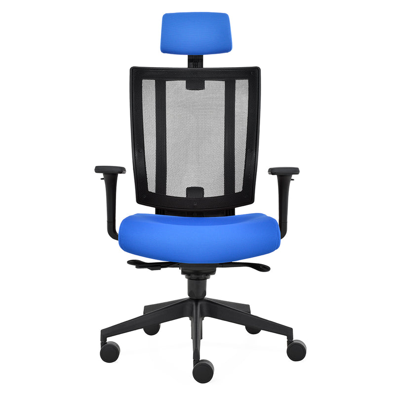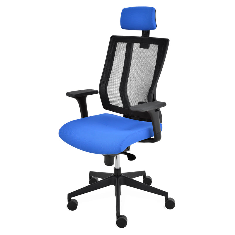 Scaun ergonomic birou Promax. Scaunul operațional Promax se asigură că timpul la birou este petrecut în condiții optime și maximum de confort. Cu o bază mobilă, scaunul Promax are mânere, șezutul și tetiera tapițate în stofă și spătarul din mesh, oferindu-vă astfel o poziție sănătoasă și comodă. Frumos colorat, completează cu funcționalitate zona de lucru.