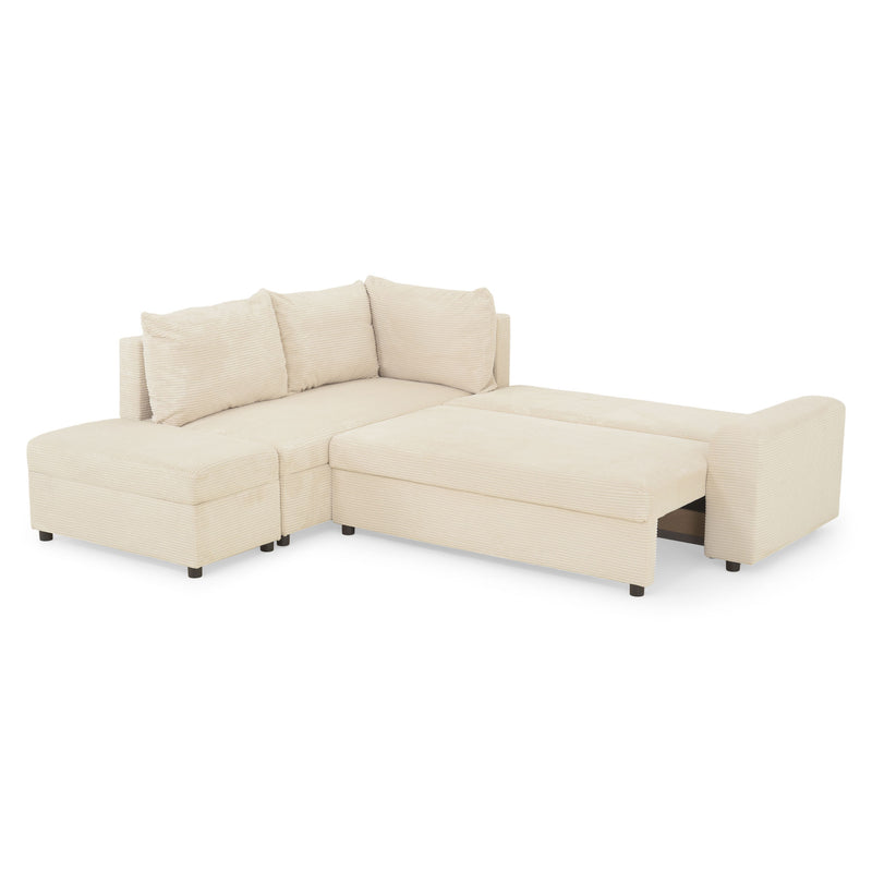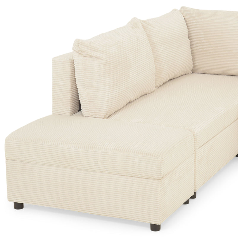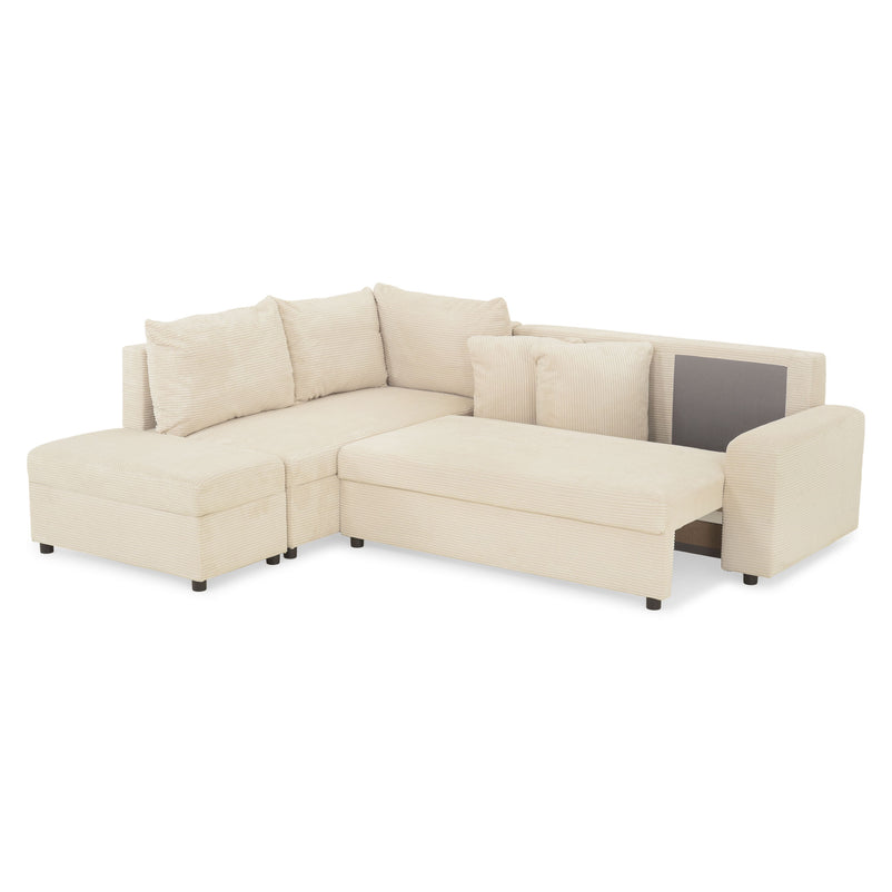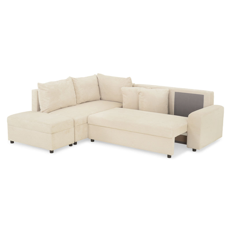 Colțar extensibil, șezlong interschimbabil, spațiu depozitare inclus, stofă Savio.