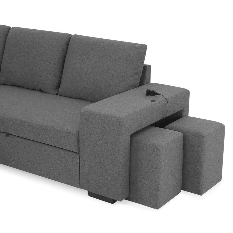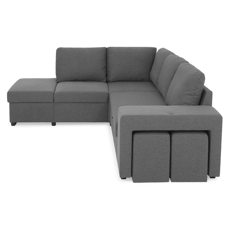Colțar extensibil, șezlong interschimbabil ,spațiu depozitare, stofă Gardon. Port USB inclus.