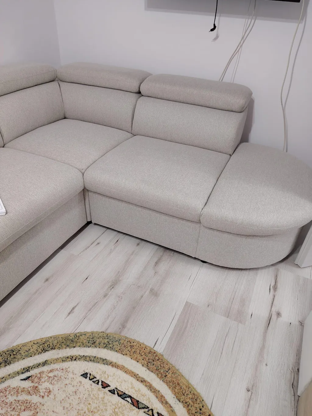 Colțar extensibil, șezlong interschimbabil, mecanism braț, stofă Orlando.