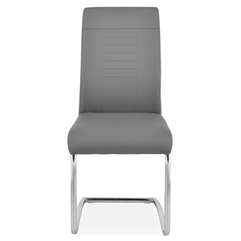 Scaun Keny. Cu o structură metalică cromată și un șezut tapițat cu imitație de piele, scaunul este foarte rezistent și confortabil. Pe lângă latura funcțională, scaunul se face remarcat și prin aspect, fiind o alegere perfectă pentru un interior în care ați mizat pe stilul modern sau elegant.