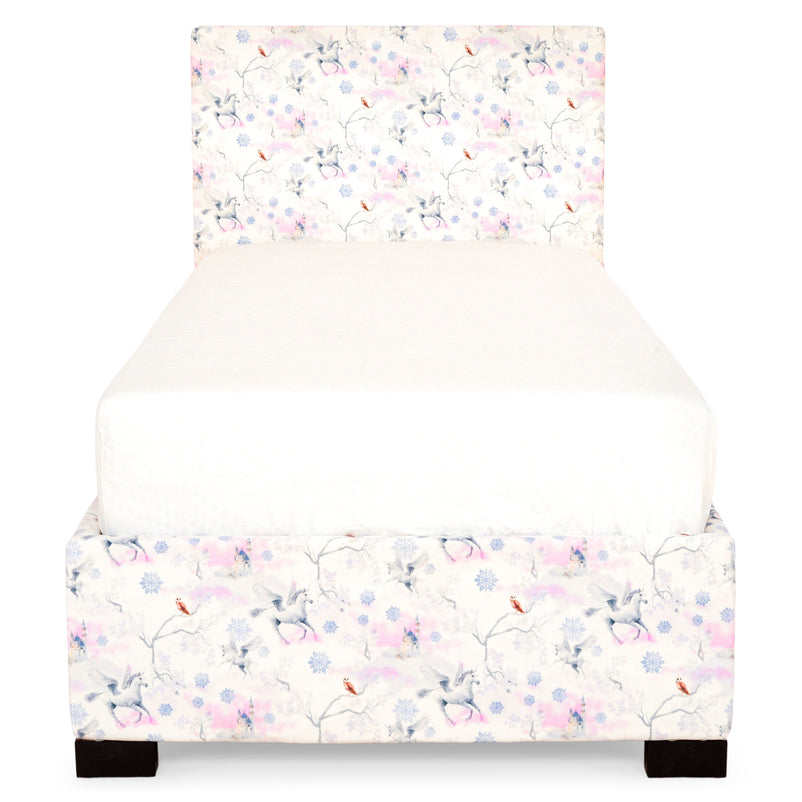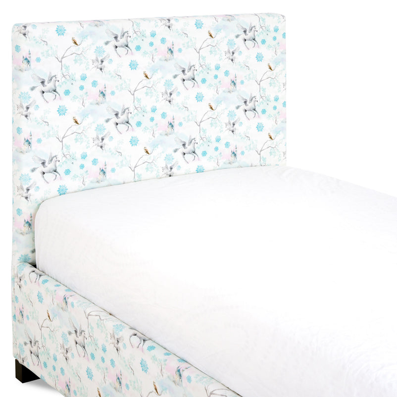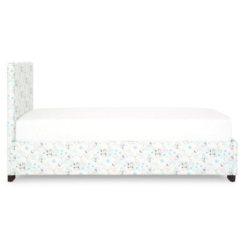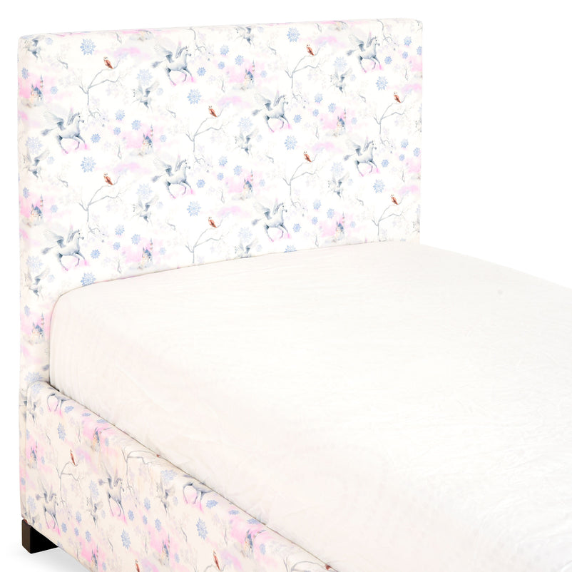 Pat tapițat, copii Fancy. Patul tapițat înveselește camera fetiței voastre grație culorii sale jucăușe si imprimeului unic. Nuanta microfibrei în care este tapițat îi permite să se integreze cu ușurință într-o încăpere amenajată în stil îndrăzneț și vioi, cu piese de mobilier in culori deschise. Desenul remarcabil al patului subliniază unicitatea și chic-ul gamei Fancy, ceea ce îl face un absolut „must have” pentru fetițele pasionate de unicorni.