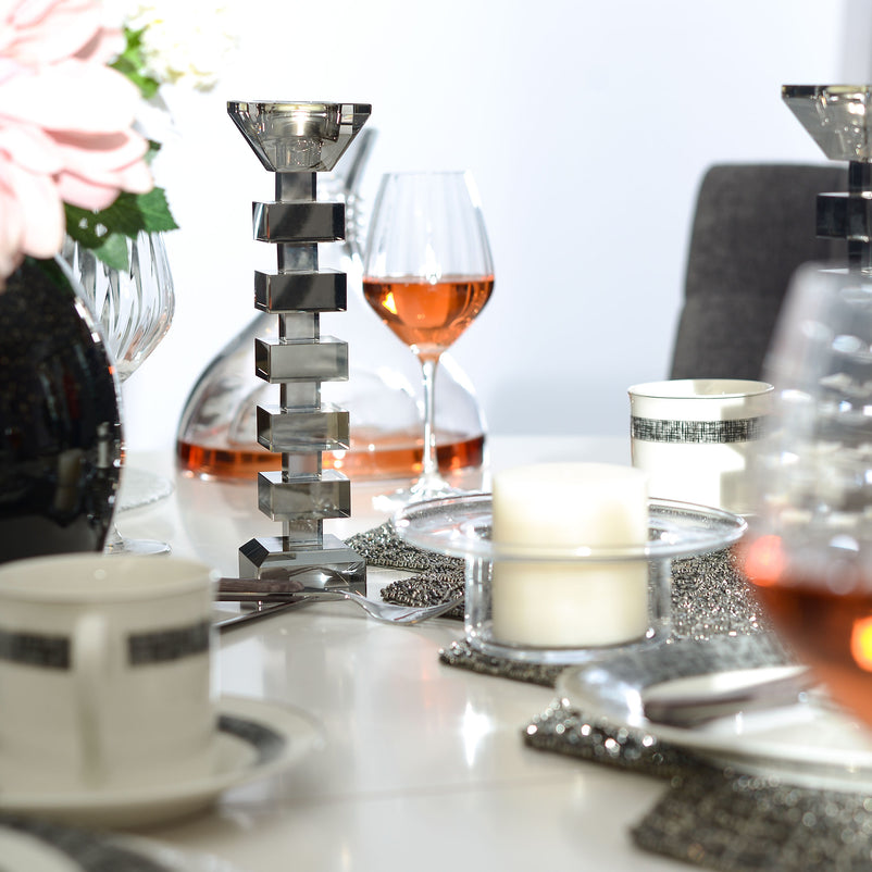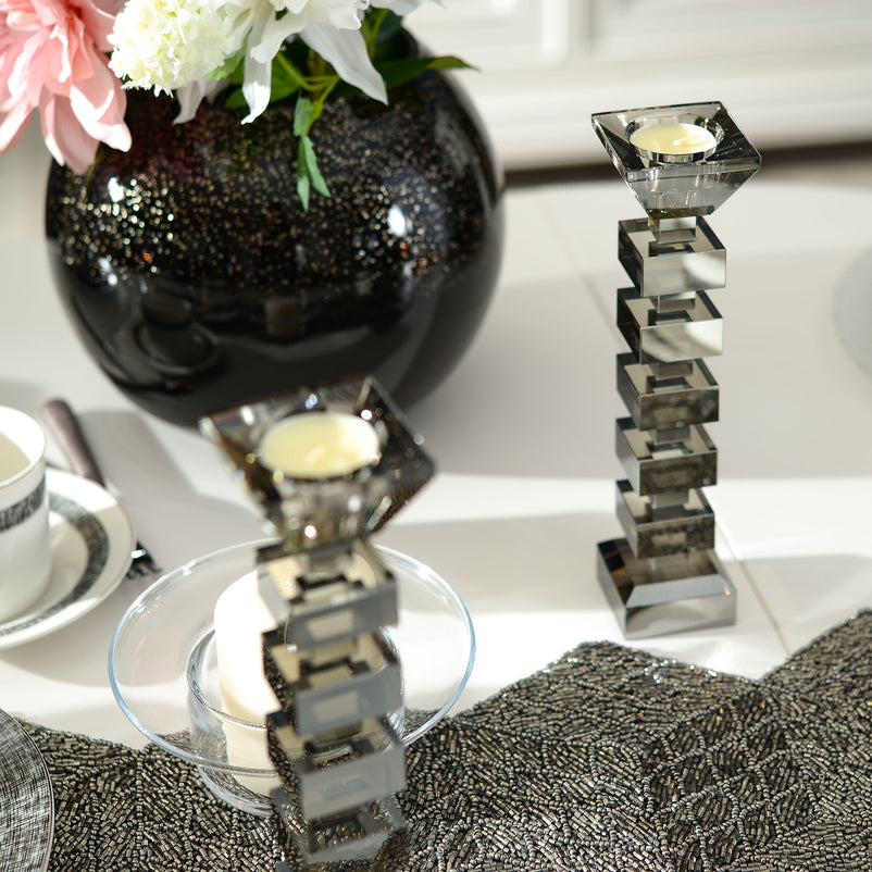 Suport lumânare Nikola. Cu o geometrie a formelor care va fascina, suportul de lumânare este decorațiunea ideală pentru un interior modern și foarte elegant. Suportul este potrivit pentru o lumânare, care să ambienteze în mod plăcut amenajarea de acasă.