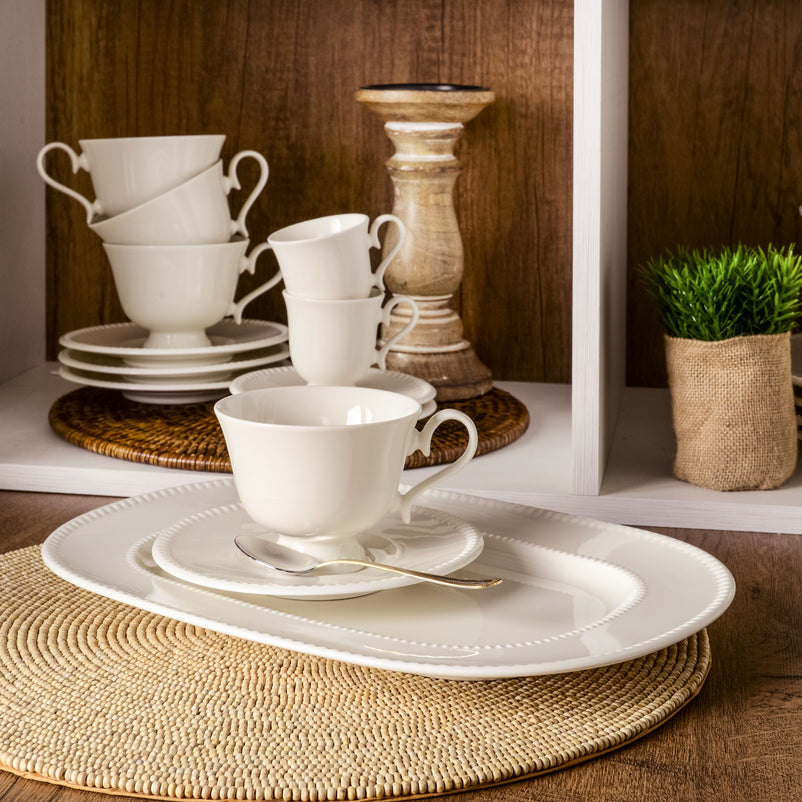 Platou, porțelan Beatrice. Completați vesela din bucătăria voastră cu un platou foarte practic și versatil. Bunul gust și rafinamentul sunt conturate prin formele simple și prin finisajul lucios realizat cu multă atenție. Platoul este ideal pentru a așeza aperitive sau pentru a așeza ceșcuțele de cafea.