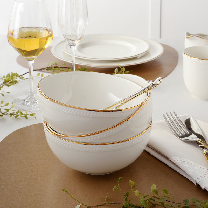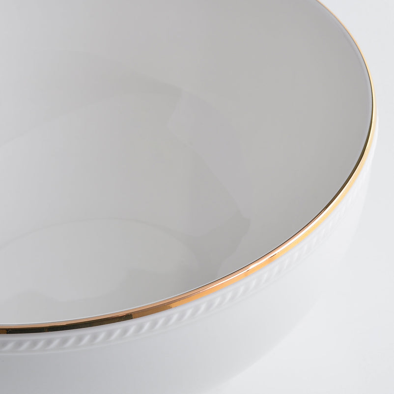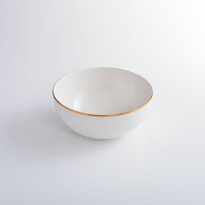 Bol individual Appeal. Gama de produse Appeal se caracterizează prin eleganță și rafinament pentru a îmbogăți aspectul meselor cu prietenii. Produsele Appeal sunt perfecte pentru evenimentele în familie și pot fi un cadou foarte practic și stilat. Finisajele aurii și modelul deosebit alcătuiesc o gamă de produse potrivite pentru mesele impozante și îmbogățite. Bolul individual Appeal vă completează colecția de veselă și redă un aer burghez la fiecare masă pe care o serviți. Bolul este realizat din porțelan de înaltă calitate și vă oferă siguranță la fiecare folosire a acestuia.