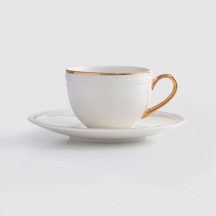 Ceașcă și farfurioară Appeal. Gama de produse Appeal se caracterizează prin eleganță și rafinament pentru a îmbogăți aspectul meselor cu prietenii. Produsele Appeal sunt perfecte pentru evenimentele în familie și pot fi un cadou foarte practic și stilat. Finisajele aurii și modelul deosebit alcătuiesc o gamă de produse potrivite pentru mesele impozante și îmbogățite. Ceașca cu farfurioară Appeal vă completează colecția de veselă și redă un aer burghez la fiecare masă pe care o serviți. Ceșcuța și farfurioara vă permit să savurați băutura preferată alături de cei dragi.