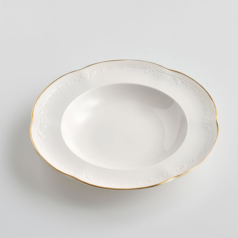 Farfurie supă, porțelan Noble. Gama Noble surprinde prin eleganţa sa, care îmbină atât latura funcţională, cât şi cea estetică. Cu un design rafinat, farfuria va completa setul de veselă pentru o servire deosebită. Aceasta este confecţionată din porţelan, cu finisaj lucios. Datorită culorii sale neutre, va pune în evidenţă orice preparat care va fi servit.