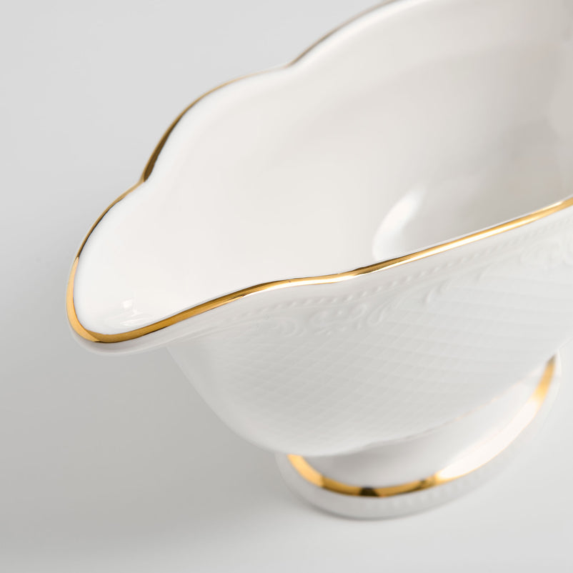 Sosieră Noble. Gama Noble surprinde prin eleganţa sa, care îmbină atât latura funcţională, cât şi cea estetică. Cu un design rafinat, sosiera va completa setul de veselă pentru o servire deosebită. Aceasta este confecţionată din porţelan, cu finisaj lucios şi este ideală pentru servirea diverselor sosuri.