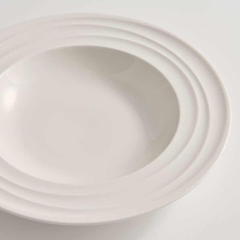 Farfurie supă porțelan Echo. Întregiți colecția de veselă cu gama de produse Echo. Cu ajutorul acestora puteți eficientiza servirea mesei pentru a vă bucura de mese festive alături de cei dragi. De asemenea, designul gamei Echo este versatil și simplu pentru a nu încărca zona de dining și pentru a o putea integra cu ușurință în bucătăria voastră. Farfuria din porțelan pentru supă Echo este elegantă și reprezintă alegerea potrivită pentru a servi supa invitaților.