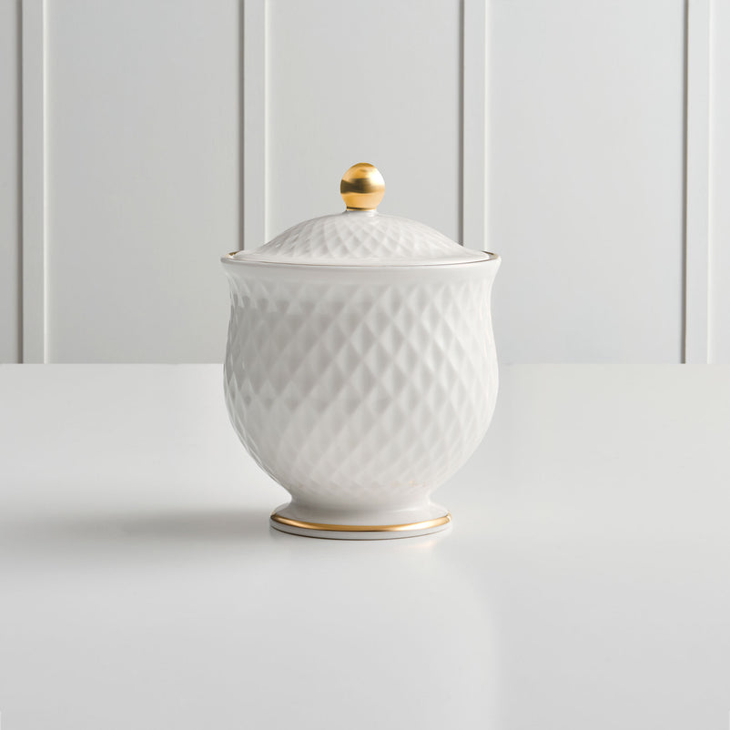 Zaharniță Eclat. Completați vesela din bucătăria voastră cu piesele din gama Eclat. Zaharnița este realizată din porțelan, cu un finisaj glazurat și are un aspect elegant. Practică și cochetă, aceasta aduce un plus de stil modului în care veți aduce la masa cel mai uzual ingredient, contribuind la o servire impecabilă.