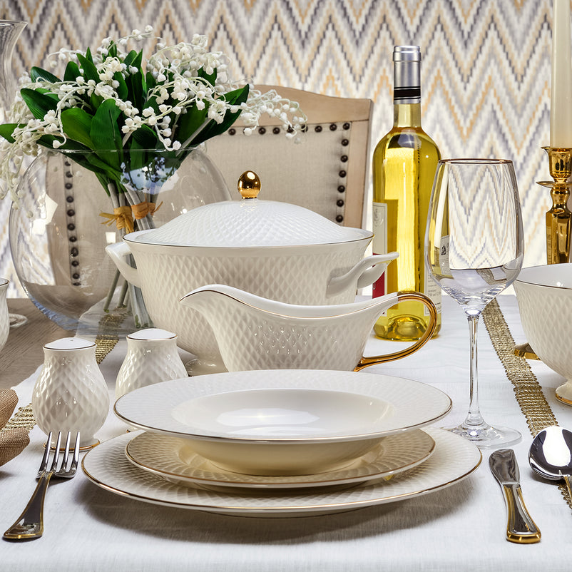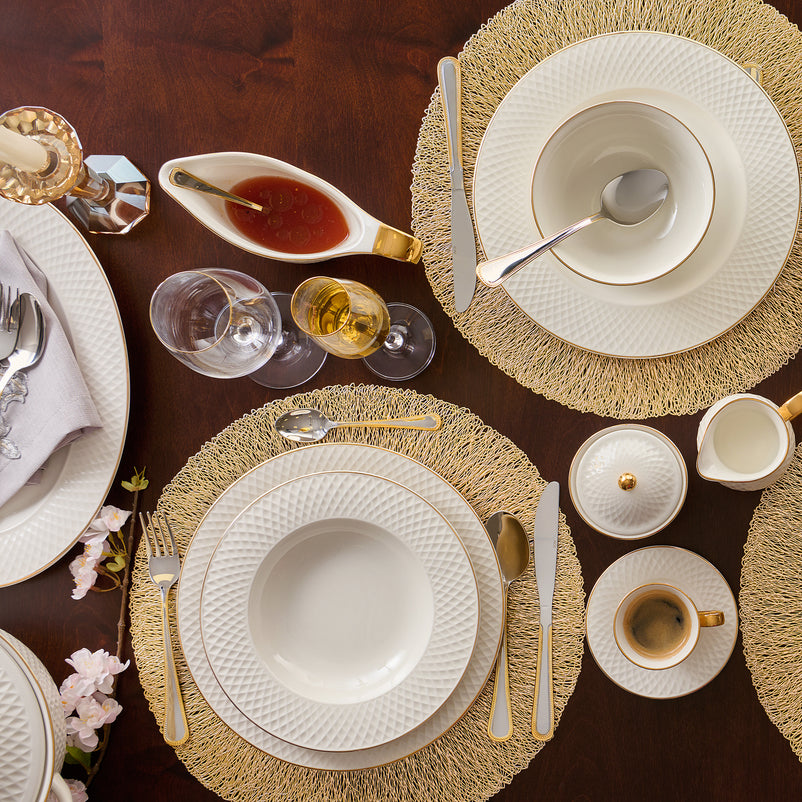 Sosieră, porțelan Eclat. Sosiera Eclat contribuie la aranjamentul unei mese sofisticate alături de persoane speciale. Cromatica deosebită și designul armonios se completează perfect reciproc, iar materialul de calitate îi conferă atât rezistență, cât și rafinament.