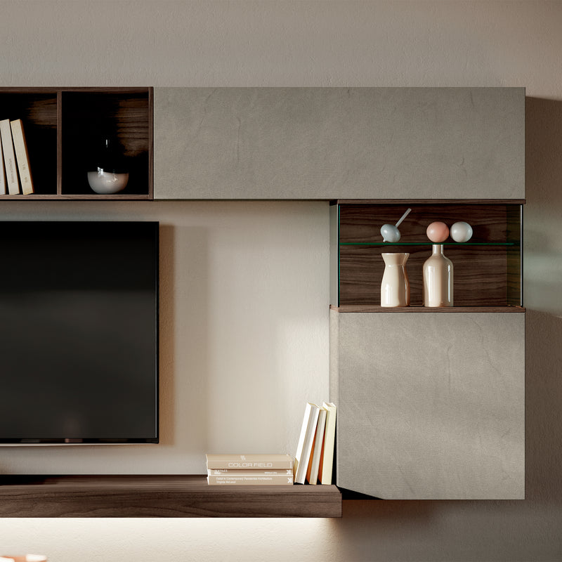 Bibliotecă Metropolis. Banda LED de sub poliță este opțională și se achiziționează separat.