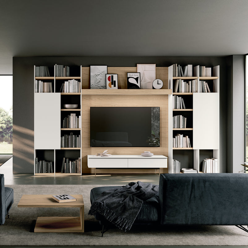 Bibliotecă Metropolis. Dimensiuni spațiu TV: L. 200 x H. 134 cm.