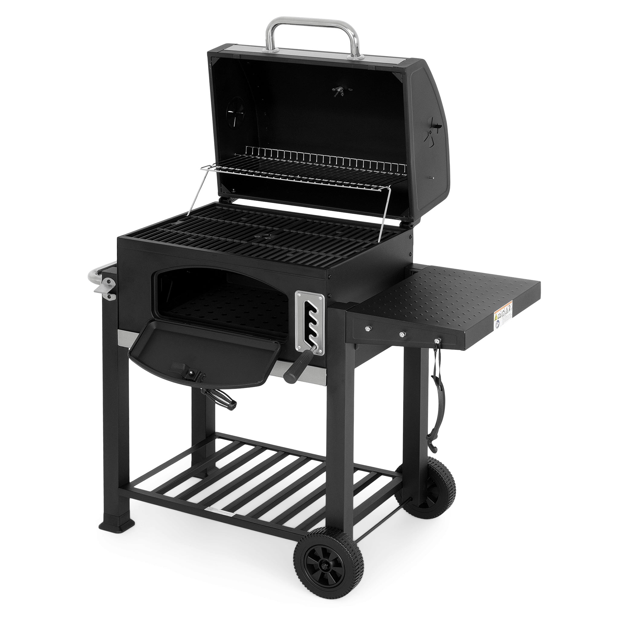 Grătar cărbuni Oakland. Bucurați-vă de zile însorite petrecute alături de cei dragi în compania celor mai delicioase fripturi preparate la un grătar Oakland. Acesta este realizat din oțel vopsit în câmp electrostatic, grillul din fontă emailată și conține elemente din aluminiu și inox. Măsuța laterală pentru lucru este pliabilă, iar tava pentru cărbuni este reglabilă pe înălțime pentru a avea un control mai bun al temperaturii. Grătarele se transformă într-o adevărată distracție și plăcere datorită ușoarei utilizări și profesionalismului acestuia. De asemenea, acesta vă oferă în plus și spațiu pentru gătit.