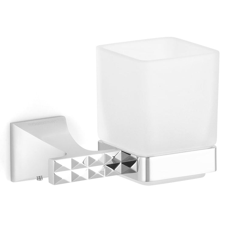 Suport pahar Parthenon. Suportul pentru pahar Parthenon va fi un element util și estetic în cadrul amenajării din baie. Acesta este realizat din alamă cromată și se remarcă prin designul deosebit. Paharul este inclus în preț.
