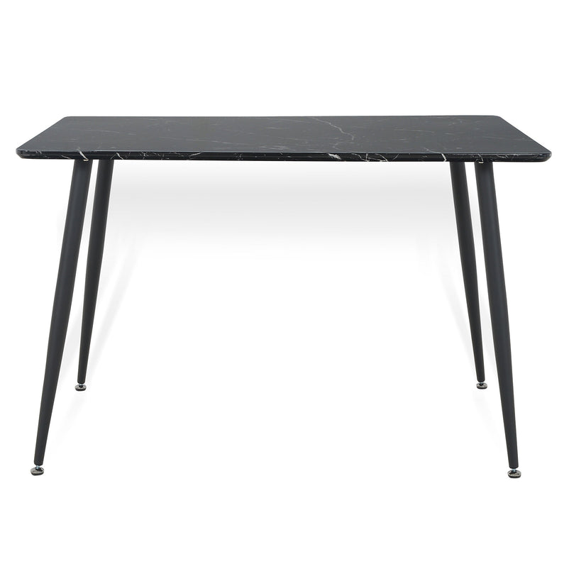 Masă Hilda. Masa Hilda reprezintă o alegere practică și modernă pentru crearea unui spațiu estetic, destinat servirii mesei. Masă este realizată din metal și MDF, fiind colorată în negru.
