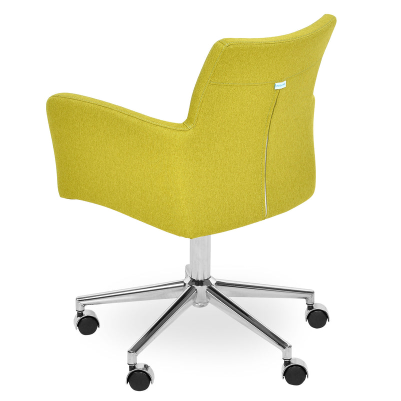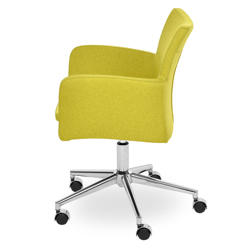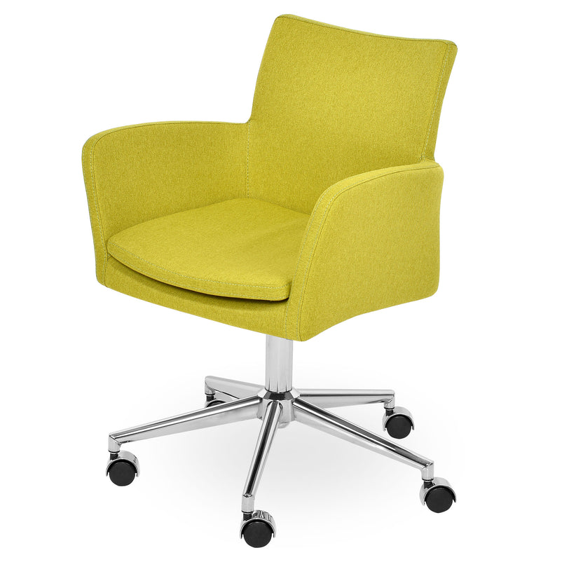 Scaun birou Rio. Confortul unor șederi relaxante la birou vin de pe un fotoliu din gama Rio, care vă asigură stabilitate de fiecare dată când îl veți folosi. Baza fotoliului este metalică, iar finisajul cromat, în timp ce structura internă este din lemn stratificat, acoperită cu spumă poliuretanică și tapițerie din stofă. Scaunul este prevăzut cu 5 rotile universale, confortul suplimentar fiind asigurat de perna de șezut fixată cu velcro. Un amănunt important al acestuia este faptul că fotoliul nu este reglabil pe înălțime.