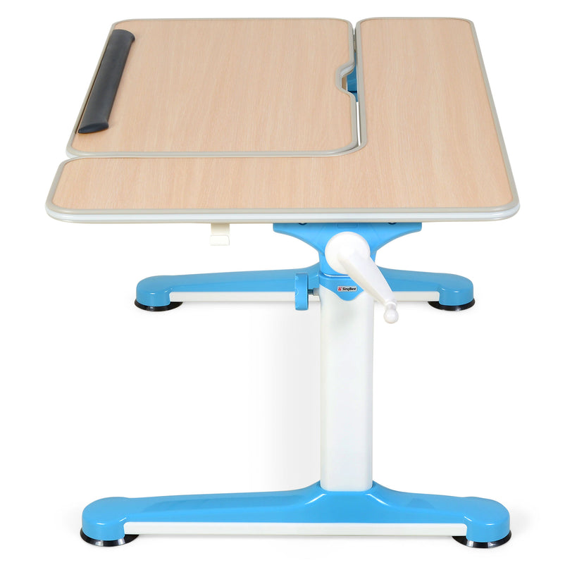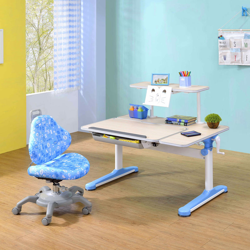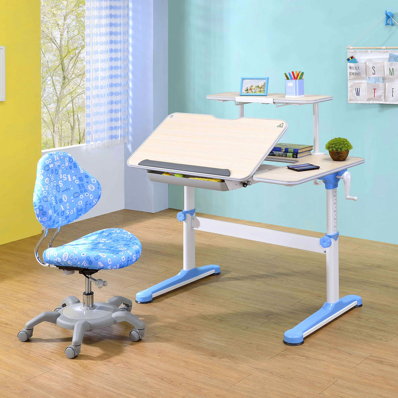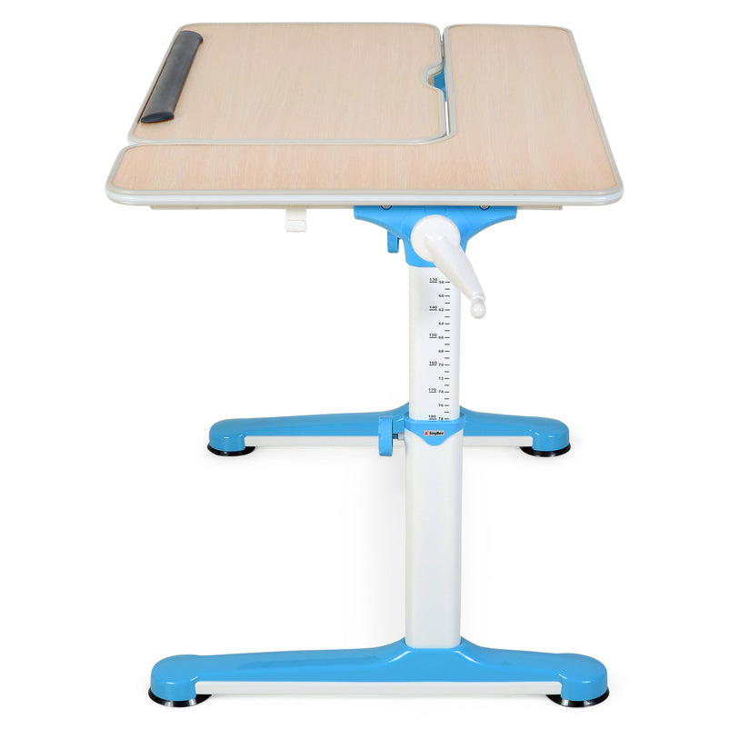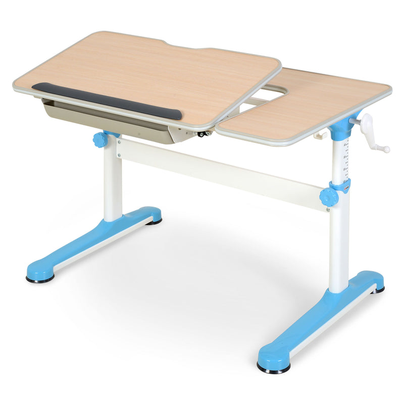 Birou ergonomic copii, 1 sertar Wisdom. Biroul este ideal pentru camera copilului vostru, pentru ca acesta să se bucure de un mediu plăcut, util și creativ unde să își facă temele și să studieze. Biroul oferă maximul de ergonomie pentru copii, datorită posibilității de a se regla în înălțime, foarte facilă, cu o manetă și a mecanismului complex și silențios de înclinare a acestuia, în 5 trepte. Cu o structură din oțel vopsit alb și blat conturat realizat din panouri aglomerate de lemn melaminat, este extrem de rezistent la uzură și oferă siguranță în utilizare. Funcționalitatea este completată de sertarul compartimentat, perfect pentru a organiza ustensilele de scris și de suportul pentru ghiozdan, amplasat în stânga și dreapta blatului. Partea fixă în formă de L a blatului oferă spațiul pentru depozitarea obiectelor favorite, iar marginile blatului sunt rotunjite, având dublu strat ABS, cu rol anti-coliziune. Acest produs asigură o postură corectă a copilului în perioada de creștere 4-10+ ani și astfel previne deformarea coloanei și miopia, frecvente la 1 din 2 copii.